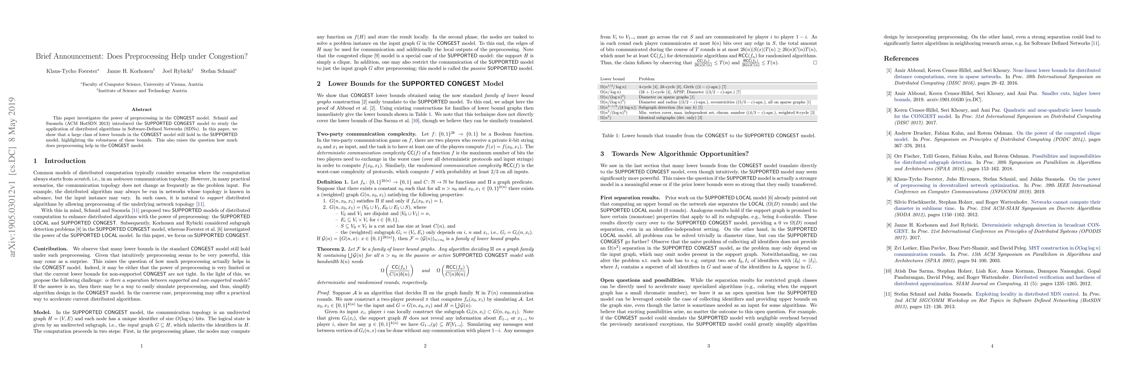 This paper examines the effectiveness of preprocessing in the CONGEST model and finds that many lower bounds remain valid in the SUPPORTED CONGEST model, suggesting preprocessing's limited impact on improving distributed algorithms in Software-Defined Networks.