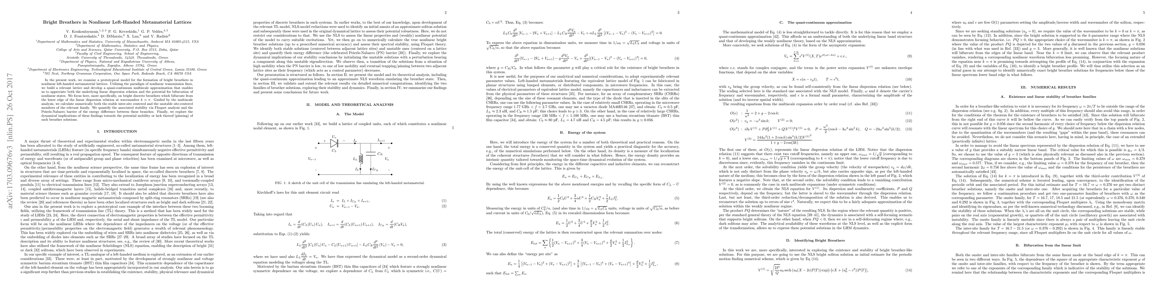 This paper investigates bright breathers in nonlinear left-handed metamaterial lattices using a quasi-continuum multiscale approach. It focuses on the bifurcation of bright discrete breathers from the linear dispersion relation, numerically analyzing their stability and exploring potential mobility or pinning effects.