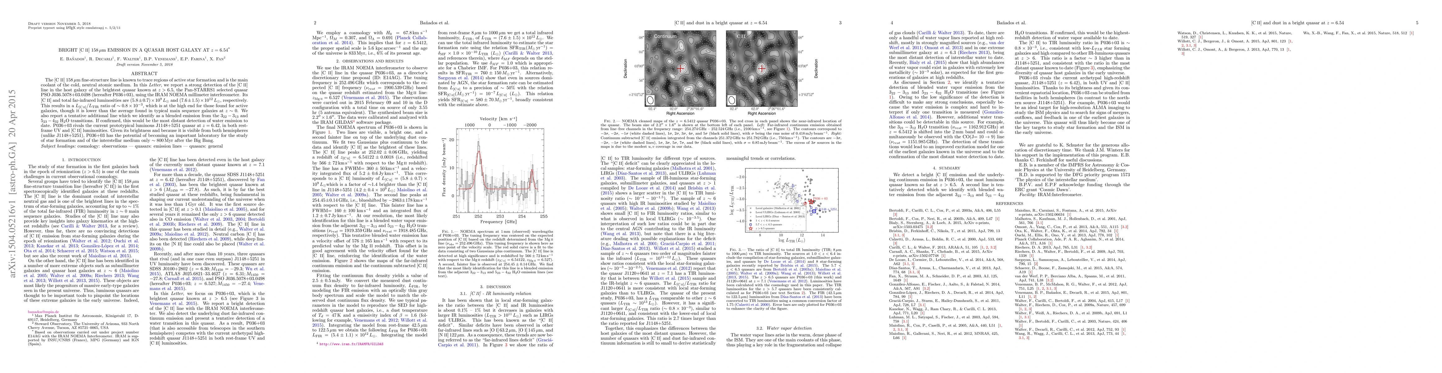 This paper reports a strong detection of the [CII] 158µm line in the host galaxy of the quasar PSO J036+03 at $z=6.54$, revealing high [CII] and far-infrared luminosities. The galaxy's [CII] luminosity indicates active star formation and positions it as a significant object for studying the interstellar medium in the early universe.