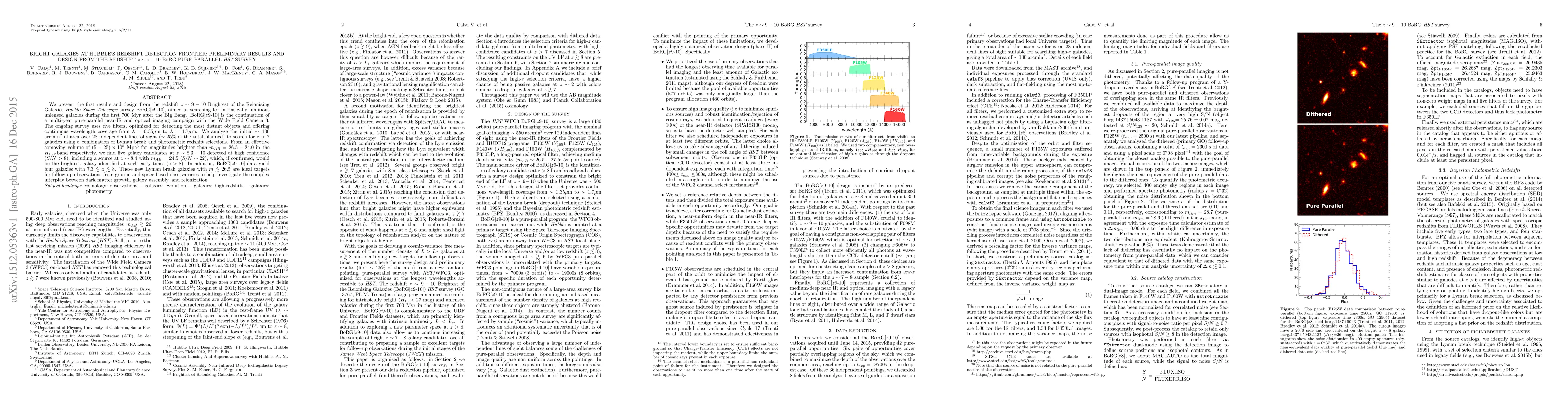 The BoRG[z9-10] survey presents a robust design and initial results, achieving image quality comparable to primary dithered imaging through an optimized pure-parallel approach, and identifying five very bright z > 8 galaxy candidates.
