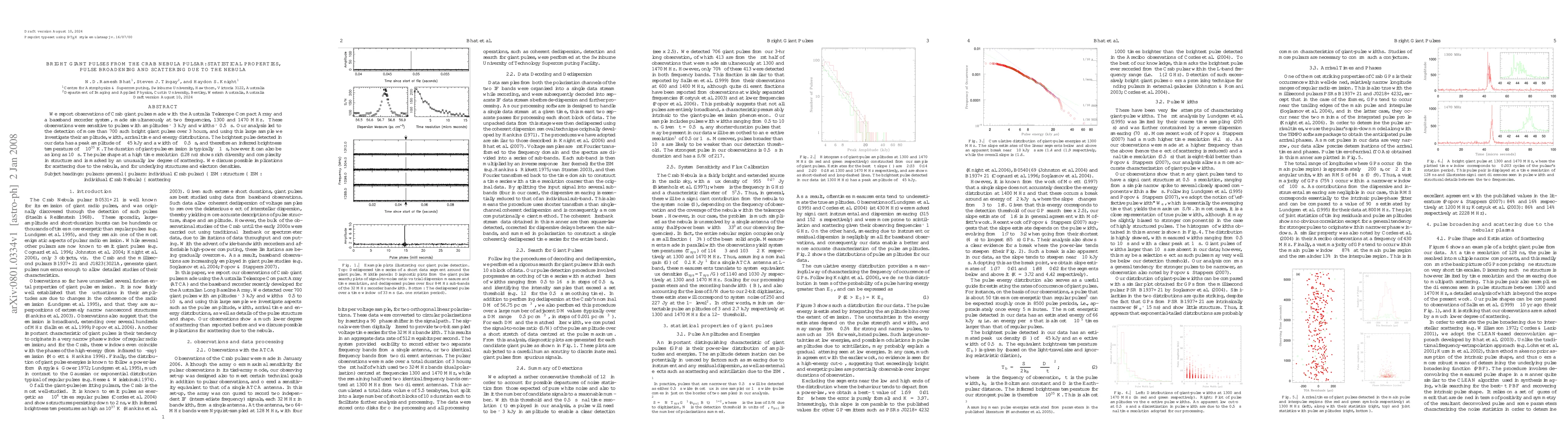 This study reports observations of bright giant pulses from the Crab Nebula pulsar, detecting over 700 pulses with peak amplitudes reaching 45 kJy and a low degree of scattering, providing insights into the pulsar's emission mechanisms and the effects of the surrounding nebula.