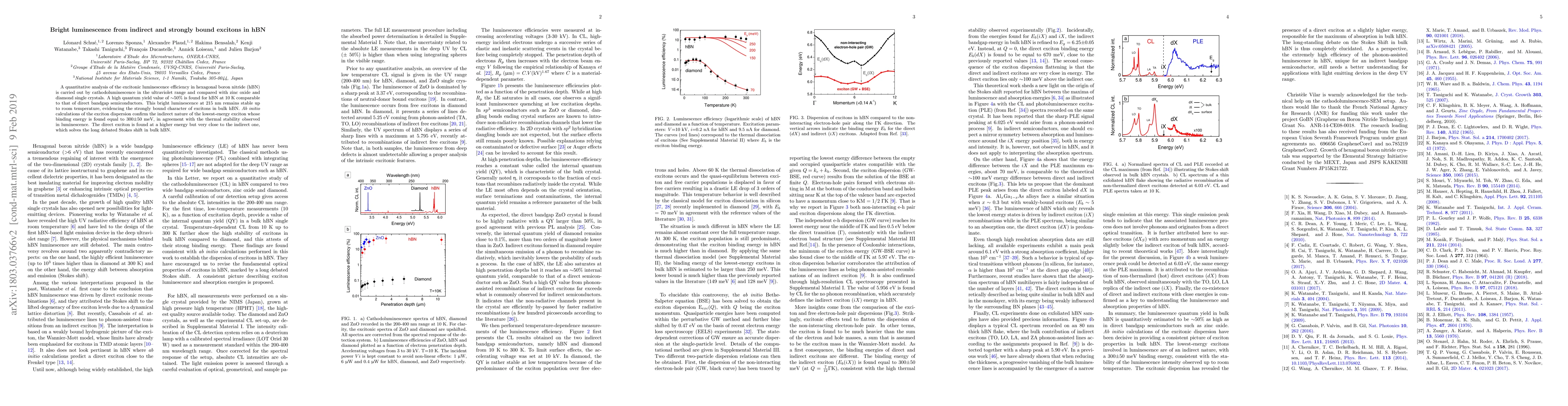 This study reveals a high quantum yield of ~50% for the luminescence of hBN at 10 K, comparable to direct bandgap semiconductors, with bright luminescence stable up to room temperature due to strongly bound excitons. Ab initio calculations confirm the indirect nature of the lowest-energy exciton, resolving the long-standing Stokes shift debate.