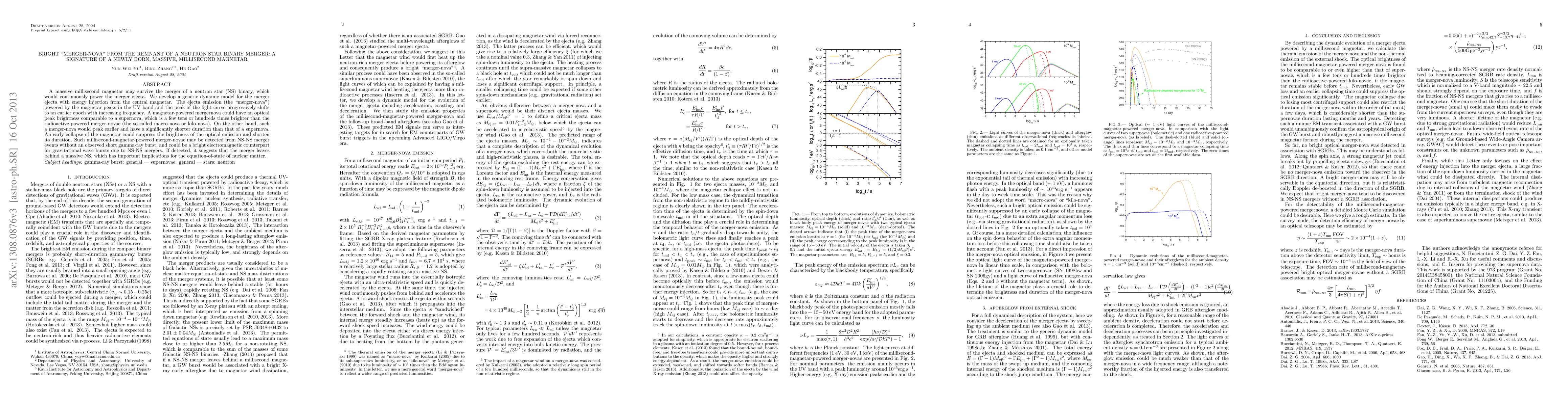 This paper proposes that a massive millisecond magnetar formed from a neutron star binary merger can power a "merger-nova," an exceptionally bright UV-peaking electromagnetic event, which may serve as a detectable counterpart to gravitational wave bursts from neutron star mergers. Such magnetar-powered merger-novae could indicate the birth of a massive neutron star remnant, impacting our understanding of nuclear matter's equation of state.