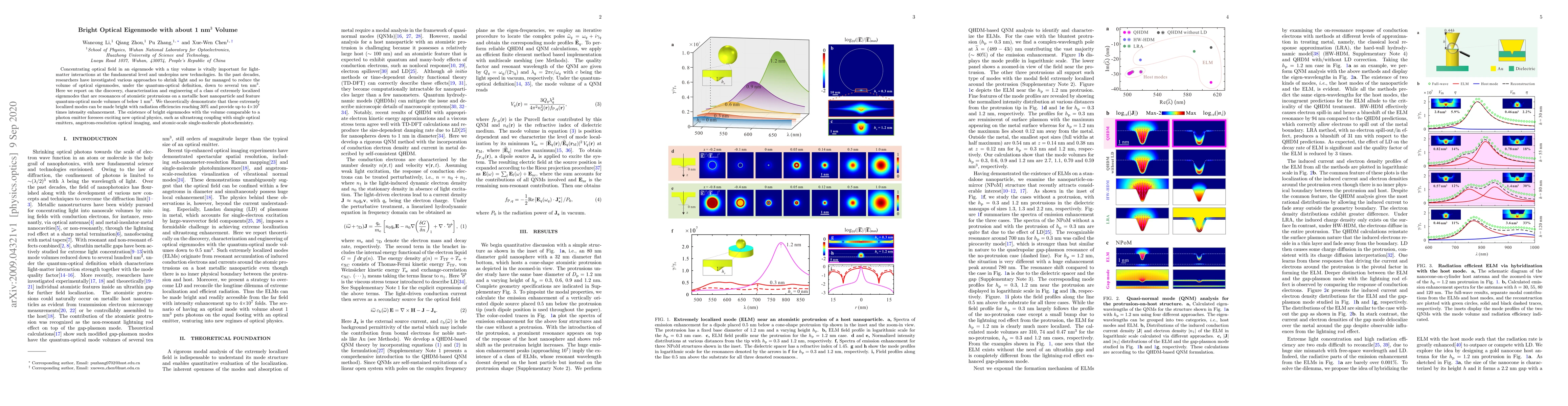 The research paper details the discovery of extremely localized optical eigenmodes, resonating from atomistic protrusions on metallic nanoparticles, with mode volumes smaller than 1 nm³. These modes are demonstrated to be bright, with radiation efficiencies up to 30%, suggesting potential for novel applications like ultrastrong coupling with single optical emitters, high-resolution imaging, and single-molecule photochemistry.