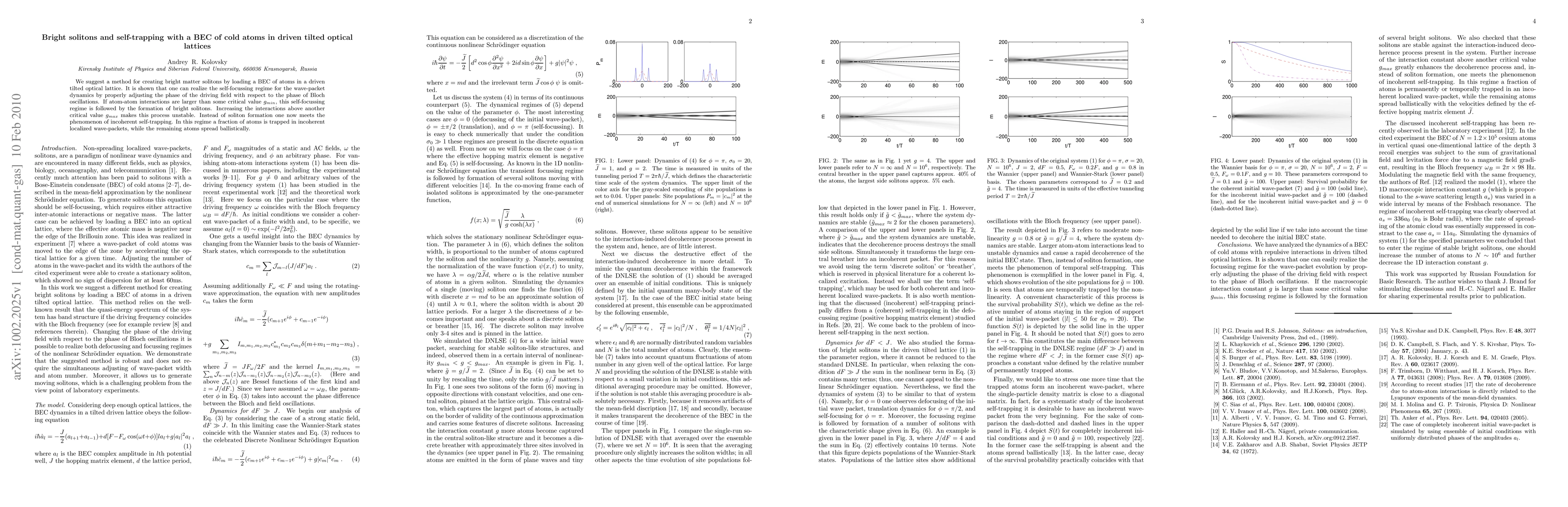 This paper proposes a method to create bright solitons in a BEC of cold atoms within a driven tilted optical lattice by adjusting the phase of the driving field. It demonstrates the transition from self-focusing to incoherent self-trapping as atom-atom interactions exceed critical thresholds, leading to either soliton formation or localized wave-packet trapping.