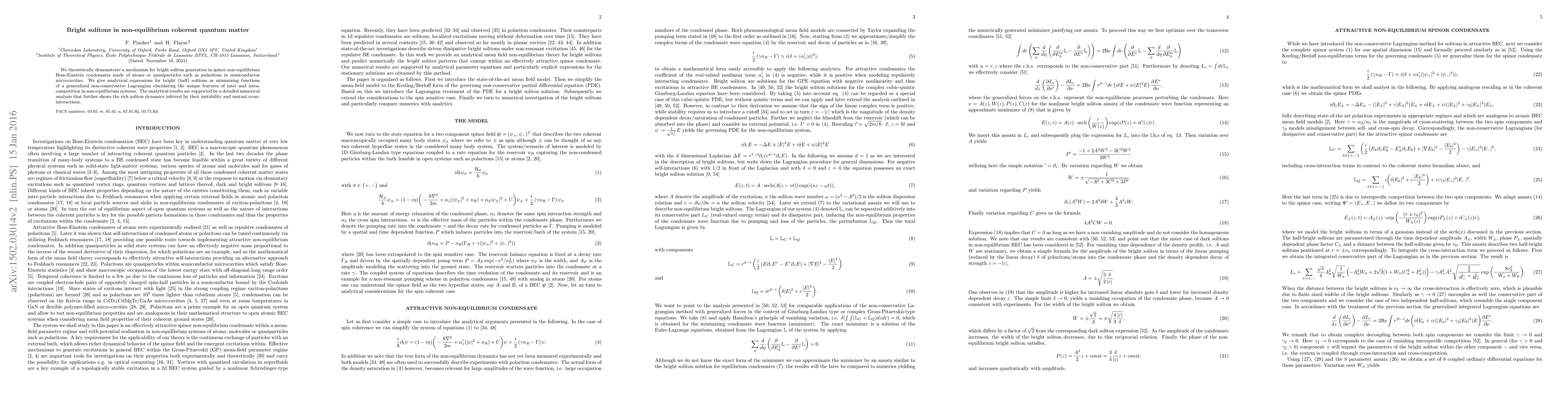 We theoretically demonstrate a mechanism for bright soliton generation in spinor non-equilibrium Bose-Einstein condensates made of atoms or quasiparticles such as polaritons in semiconductor microcavities. We give analytical expressions for bright (half) solitons as minimizing functions of a generalized non-conservative Lagrangian elucidating the unique features of inter and intra-competition in non-equilibrium systems. The analytical results are supported by a detailed numerical analysis that further shows the rich soliton dynamics inferred by their instability and mutual cross-interactions.