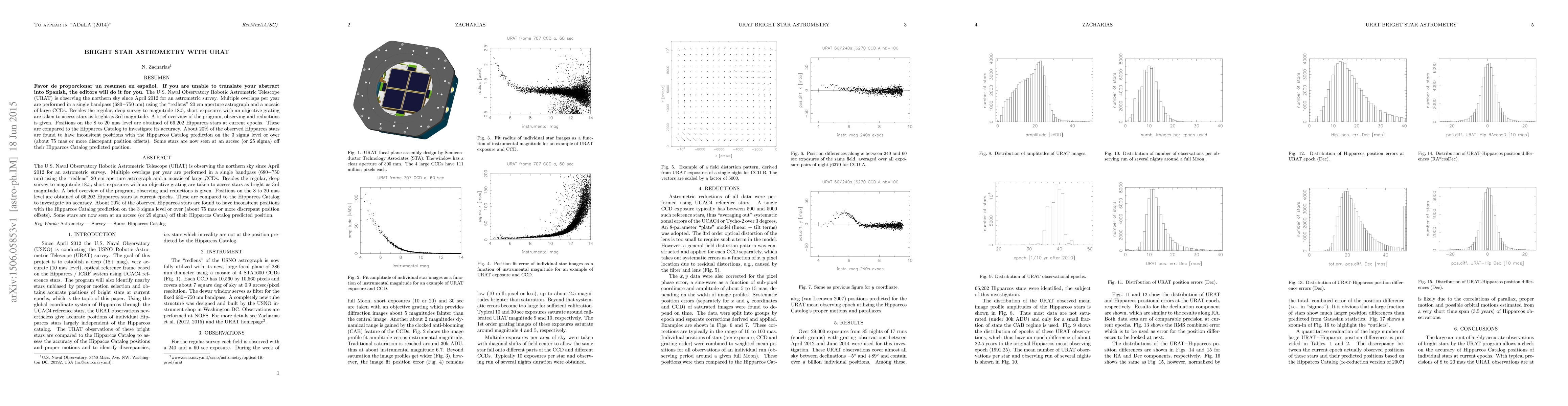 The U.S. Naval Observatory Robotic Astrometric Telescope (URAT) conducts astrometric surveys of the northern sky, achieving positions of Hipparcos stars with an accuracy of 8 to 20 mas. Comparisons reveal that about 20% of these stars have discrepancies of 75 mas or more from the Hipparcos Catalog, with some as large as an arcsec.