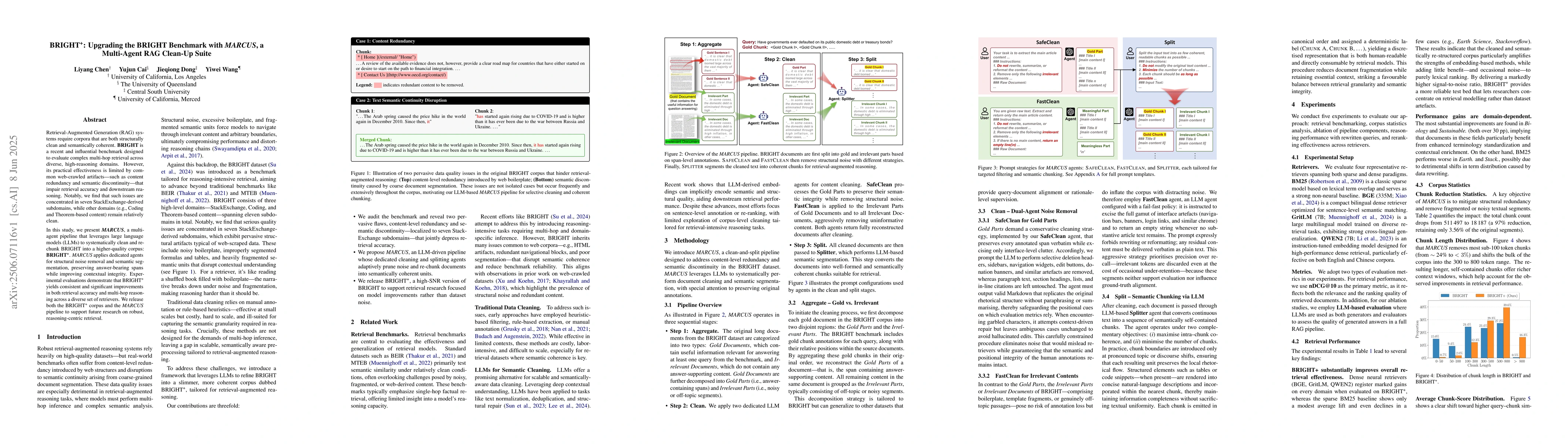 Retrieval-Augmented Generation (RAG) systems require corpora that are both structurally clean and semantically coherent. BRIGHT is a recent and influential benchmark designed to evaluate complex multi-hop retrieval across diverse, high-reasoning domains. However, its practical effectiveness is limited by common web-crawled artifacts - such as content redundancy and semantic discontinuity - that impair retrieval accuracy and downstream reasoning. Notably, we find that such issues are concentrated in seven StackExchange-derived subdomains, while other domains (e.g., Coding and Theorem-based content) remain relatively clean. In this study, we present MARCUS, a multi-agent pipeline that leverages large language models (LLMs) to systematically clean and re-chunk BRIGHT into a higher-quality corpus: BRIGHT-Plus. MARCUS applies dedicated agents for structural noise removal and semantic segmentation, preserving answer-bearing spans while improving contextual integrity. Experimental evaluations demonstrate that BRIGHT-Plus yields consistent and significant improvements in both retrieval accuracy and multi-hop reasoning across a diverse set of retrievers. We release both the BRIGHT-Plus corpus and the MARCUS pipeline to support future research on robust, reasoning-centric retrieval.