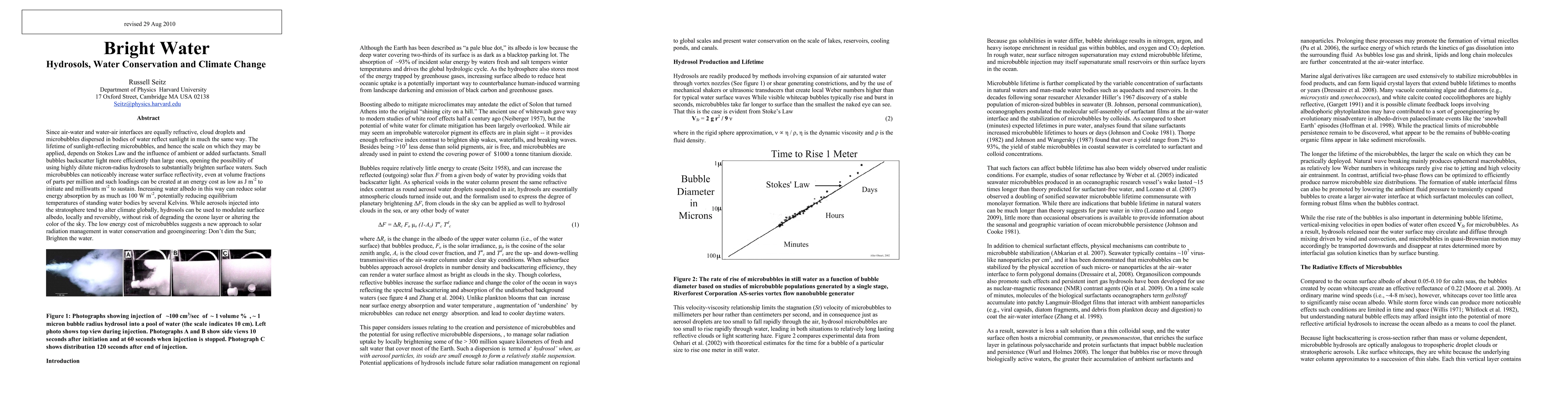 Researchers found that adding tiny bubbles to water can increase its reflectivity, potentially reducing solar energy absorption and cooling equilibrium temperatures of standing water bodies. This 'brightening' approach could be used for water conservation and geoengineering with low energy costs and no risk to the ozone layer.