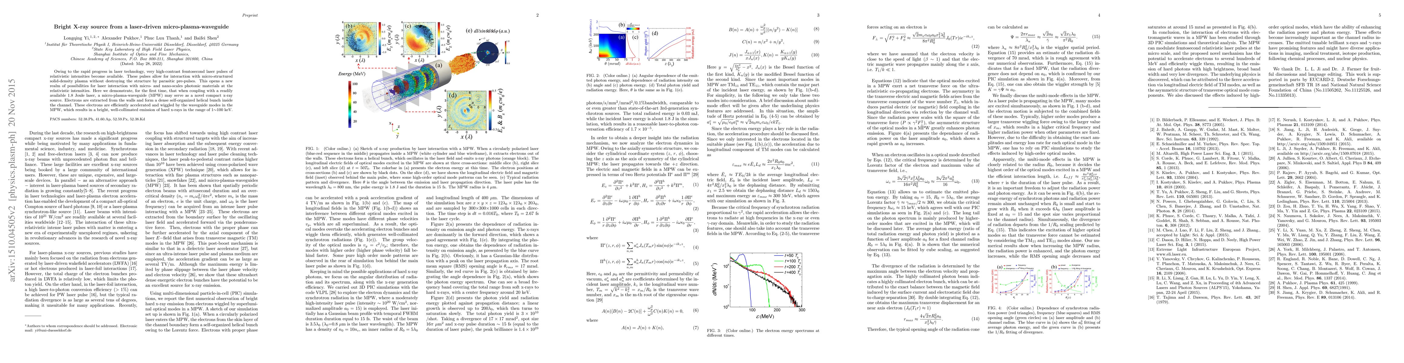 This paper demonstrates the creation of a compact, bright x-ray source using a micro-plasma-waveguide (MPW) coupled with a high-intensity femtosecond laser pulse. The MPW enables efficient acceleration and collimation of electrons, resulting in a well-organized helical bunch that emits hard x-rays in the 1~100 keV range.
