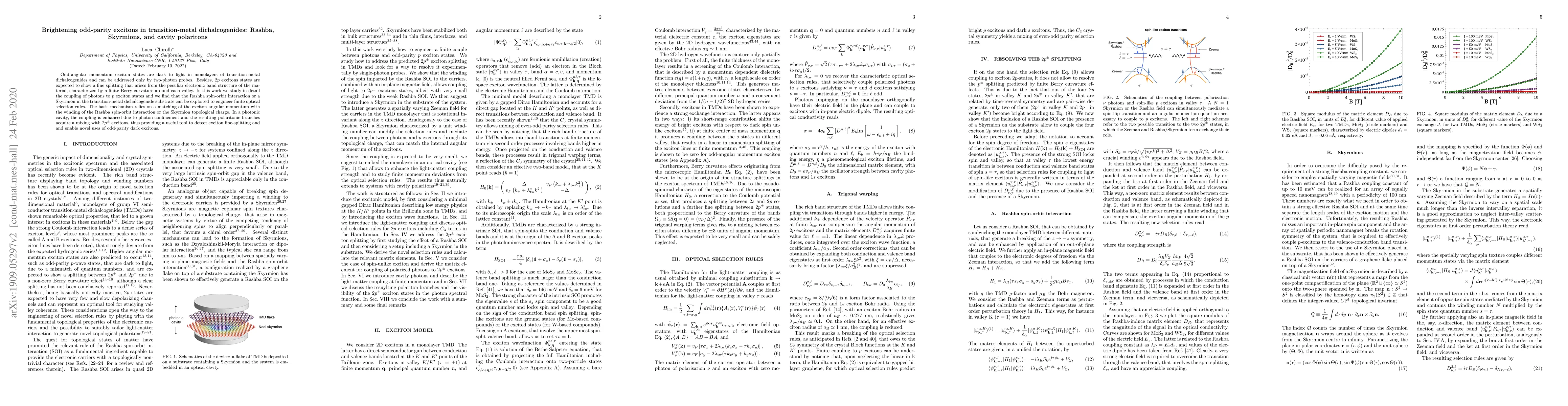 The paper presents a detailed analysis of the coupling between photons and odd-parity dark excitons in TMDs, demonstrating how Rashba SOI and Skyrmions can be used to engineer finite optical selection rules and brighten these previously inaccessible excitonic states.