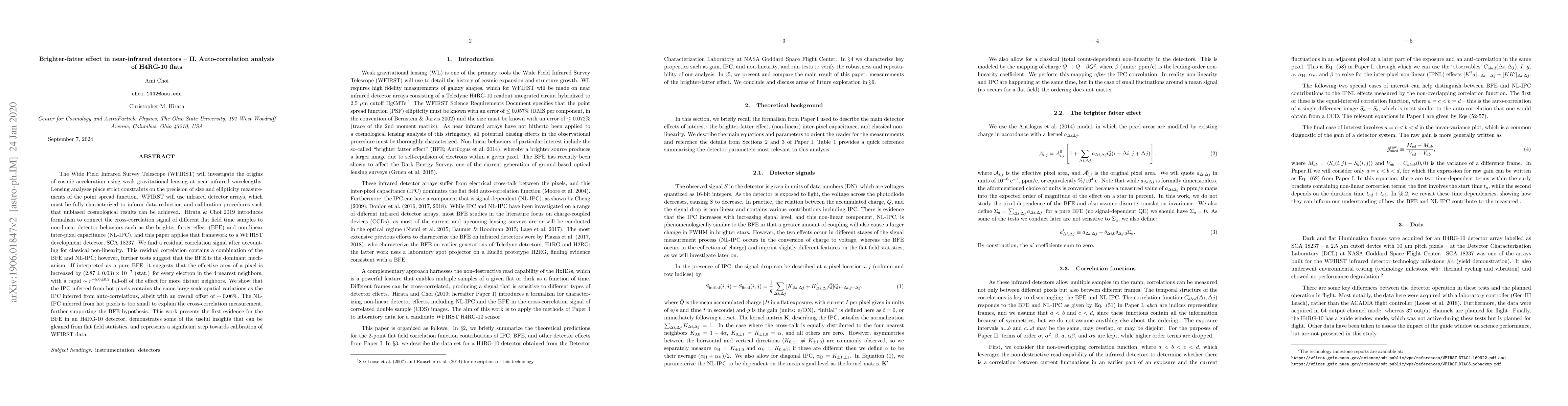 This paper investigates the brighter-fatter effect (BFE) in WFIRST's H4RG-10 detector using auto-correlation analysis, finding that BFE is the dominant mechanism causing non-linear detector behavior. The study suggests an effective pixel area increase due to BFE, with a significant fall-off for distant neighbors, and supports calibration efforts for WFIRST data.
