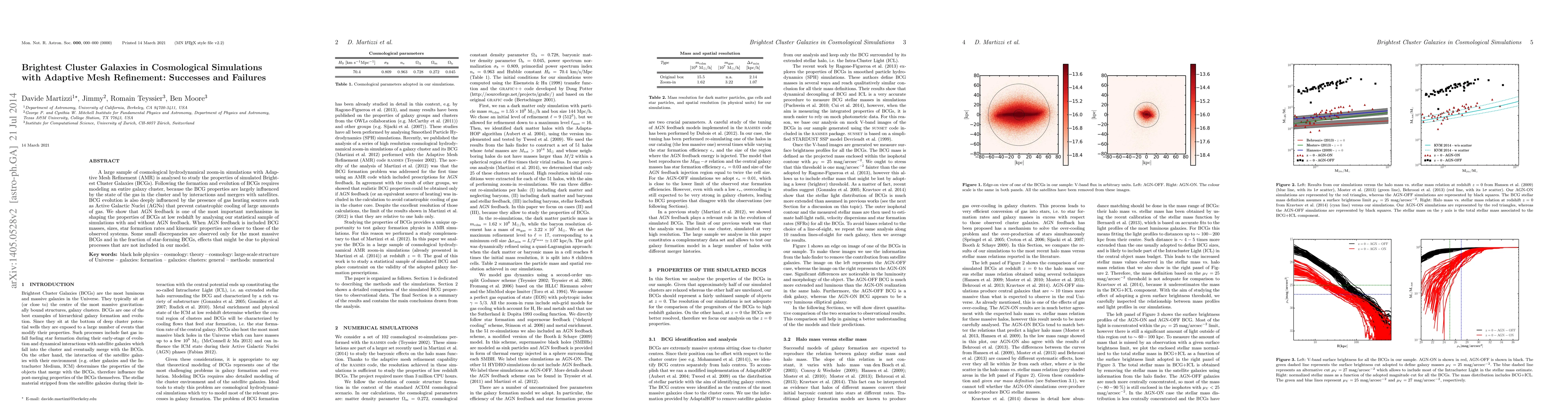 This paper analyzes cosmological simulations with Adaptive Mesh Refinement to study Brightest Cluster Galaxies (BCGs), finding that AGN feedback significantly improves the match between simulated and observed BCG properties. Discrepancies for the most massive BCGs suggest missing physical processes in the model.