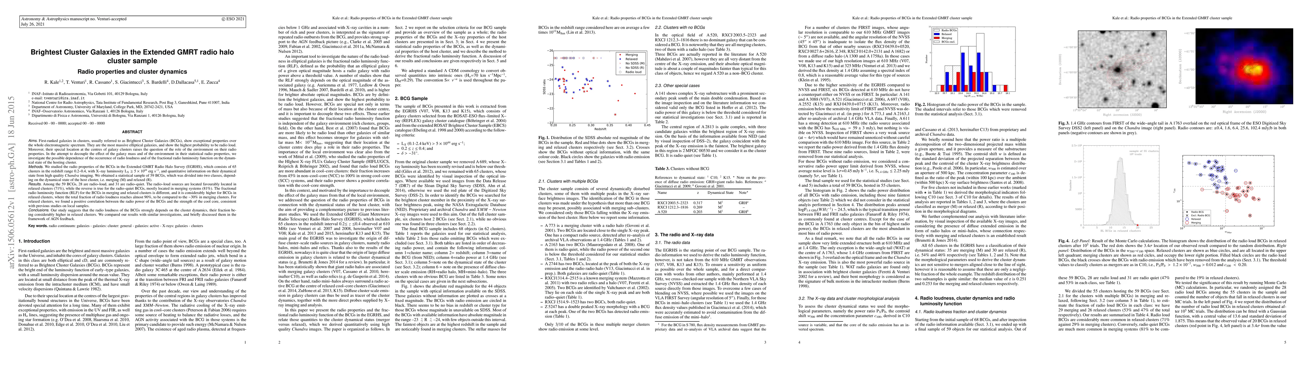 This study investigates the radio properties of Brightest Cluster Galaxies (BCGs) in the Extended GMRT Radio Halo Survey, finding that radio-loud BCGs predominantly reside in relaxed clusters, while radio-quiet BCGs are more common in merging clusters. The radio luminosity function is significantly higher in relaxed clusters, suggesting a strong dependence of BCG radio loudness on the cluster's dynamical state.