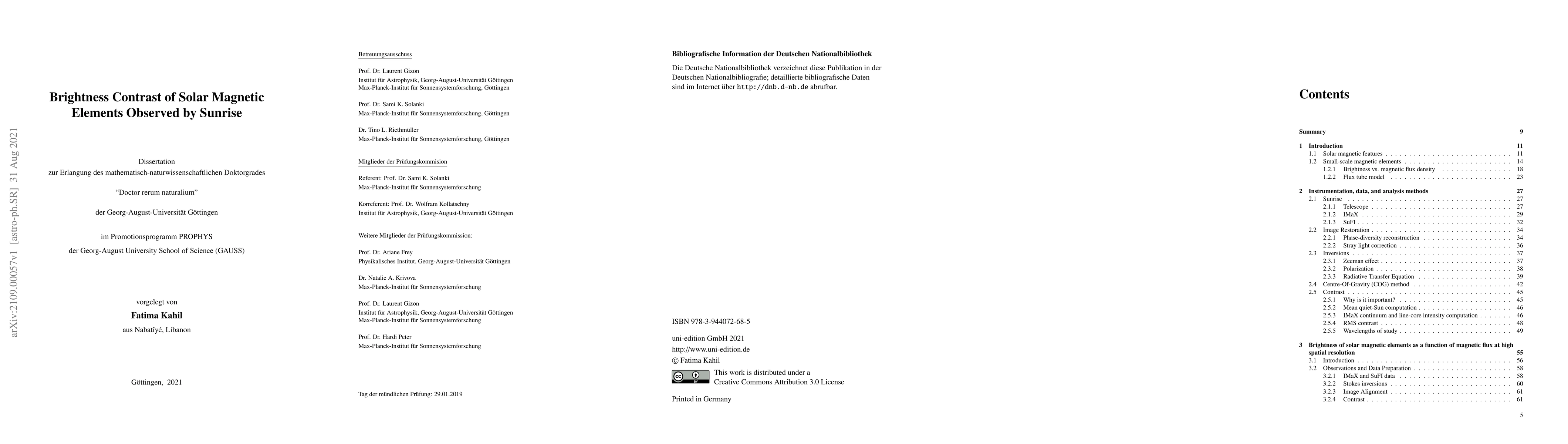The irradiance of the Sun is modulated on all time scales. Small-scale solar magnetic elements composed of quiet-Sun network and active region plages contribute to this modulation on solar cycle time scales. The evaluation of their contrast as a function of their magnetic field strength is an important constraint for models of solar irradiance variation. In this thesis, we improve and extend the results of earlier contrast studies taking advantage of the high resolution data delivered by the balloon-borne solar observatory Sunrise during its science flights in 2009 and 2013. In addition to the high quality of the Sunrise data, access to the UV wavelengths makes these data unique in this kind of study. In the first two parts of this thesis, we find that the contrast variation with the magnetic field strength agrees qualitatively with radiative magnetohydrodynamic simulations of the quiet Sun. In particular, at a continuum wavelength around 500\,nm, the contrast does not decrease at large field strengths, indicative of having resolved these features. In addition, the contrast at all wavelengths in the quiet-Sun network is found to be higher than in solar plage, and the difference decreases with atmospheric height in accordance with empirical models of flux tubes. In the last part of this thesis, we make use of solar limb data observed by Sunrise to evaluate the contribution of stray light to the total point spread function of the telescope.
