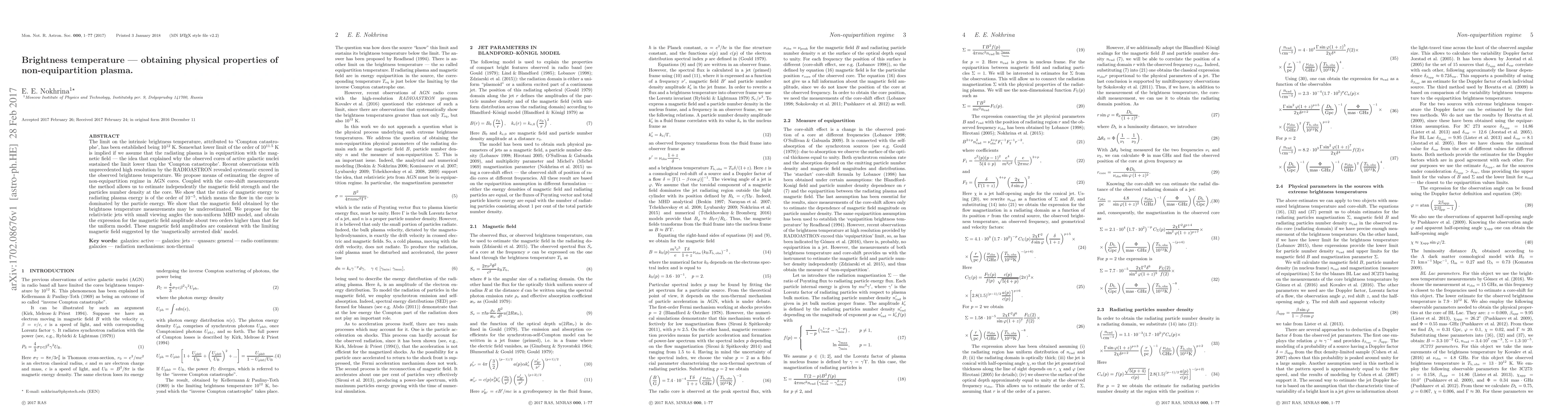 Researchers found that the intrinsic brightness temperature in active galactic nuclei is higher than previously thought, with a ratio of magnetic energy to plasma energy indicating non-equipartition conditions. This discovery provides new insights into the nature of relativistic jets in AGN cores.
