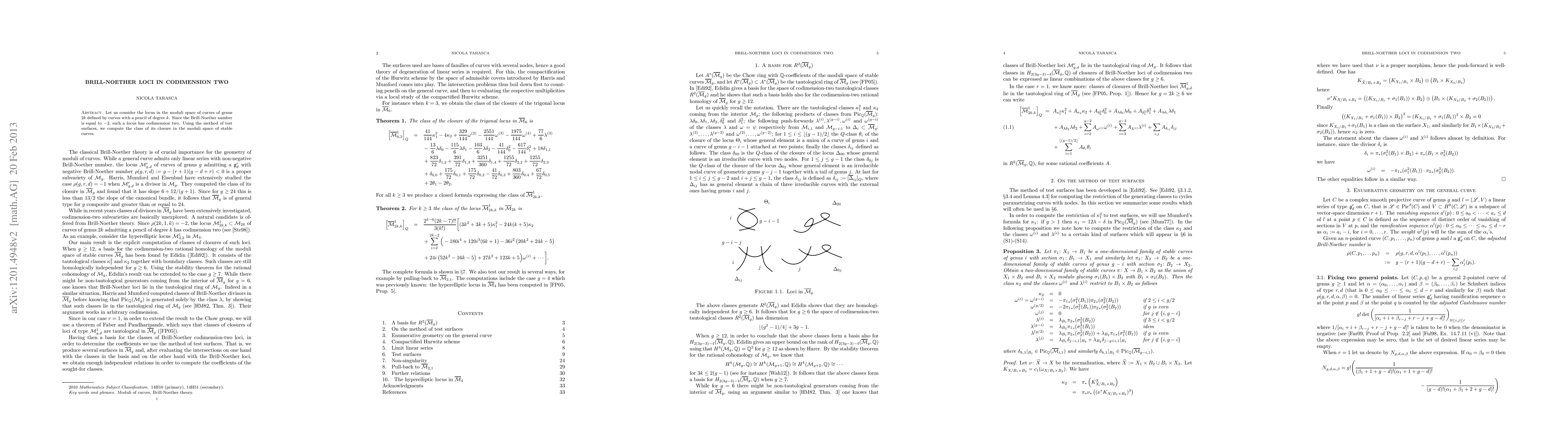 Let us consider the locus in the moduli space of curves of genus 2k defined by curves with a pencil of degree k. Since the Brill-Noether number is equal to -2, such a locus has codimension two. Using the method of test surfaces, we compute the class of its closure in the moduli space of stable curves.