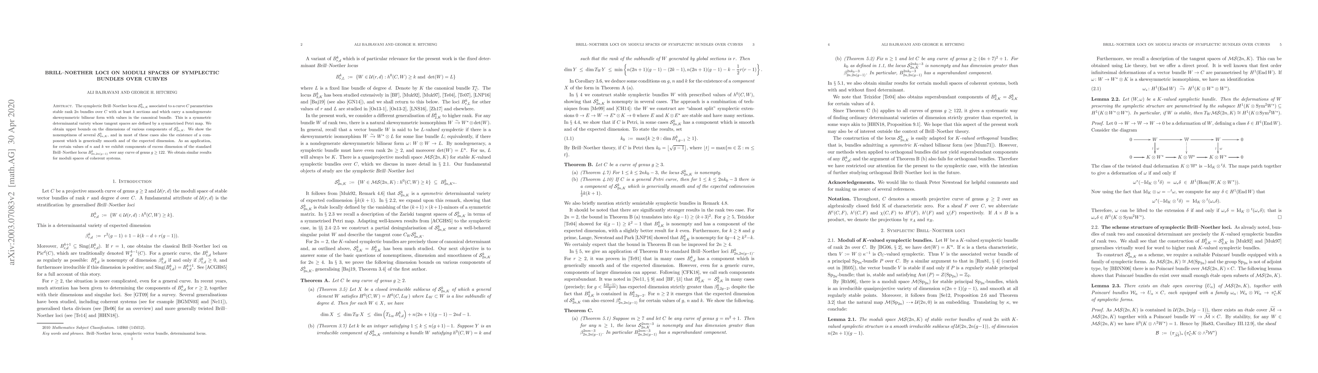 The symplectic Brill--Noether locus ${\mathcal S}_{2n, K}^k$ associated to a curve $C$ parametrises stable rank $2n$ bundles over $C$ with at least $k$ sections and which carry a nondegenerate skewsymmetric bilinear form with values in the canonical bundle. This is a symmetric determinantal variety whose tangent spaces are defined by a symmetrised Petri map. We obtain upper bounds on the dimensions of various components of ${\mathcal S}_{2n, K}^k$. We show the nonemptiness of several ${\mathcal S}_{2n, K}^k$, and in most of these cases also the existence of a component which is generically smooth and of the expected dimension. As an application, for certain values of $n$ and $k$ we exhibit components of excess dimension of the standard Brill--Noether locus $B^k_{2n, 2n(g-1)}$ over any curve of genus $g \ge 122$. We obtain similar results for moduli spaces of coherent systems.
