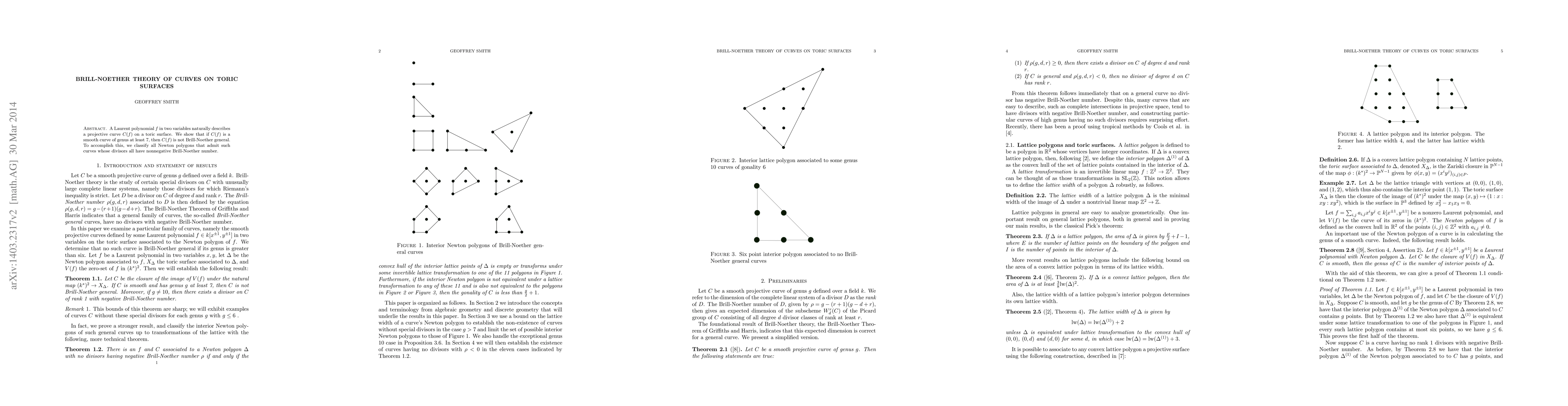 Researchers study curves on toric surfaces using Brill-Noether theory, finding that certain curves with high genus cannot meet the theory's generalization criteria. They classify specific Newton polygons to understand exceptions to this rule.