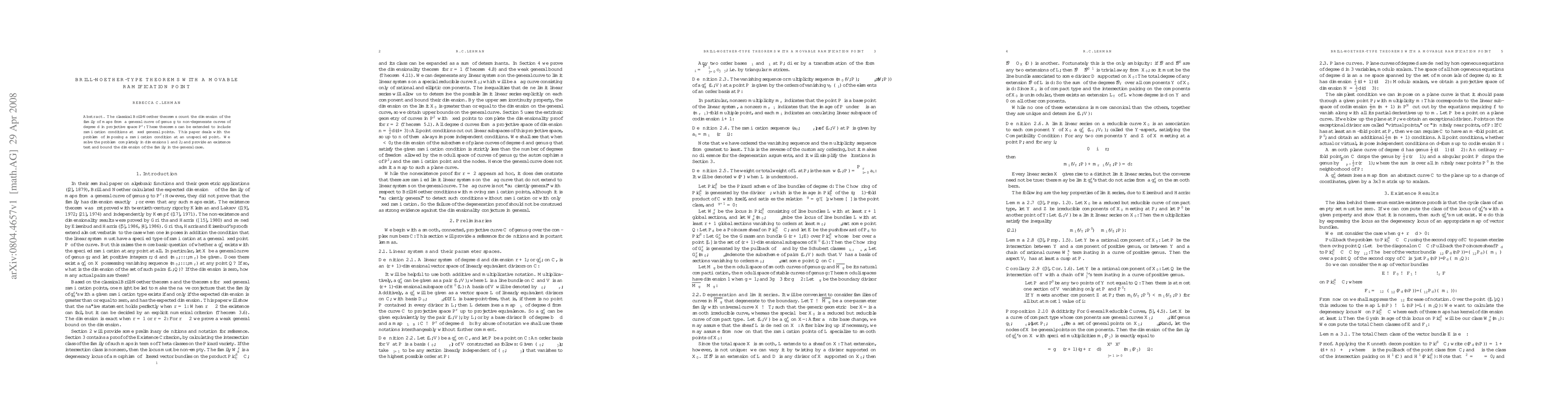 This paper extends classical Brill-Noether theorems to include ramification conditions at a movable point, solving the problem fully in dimensions 1 and 2, and offering an existence test and dimension bounds for general cases.
