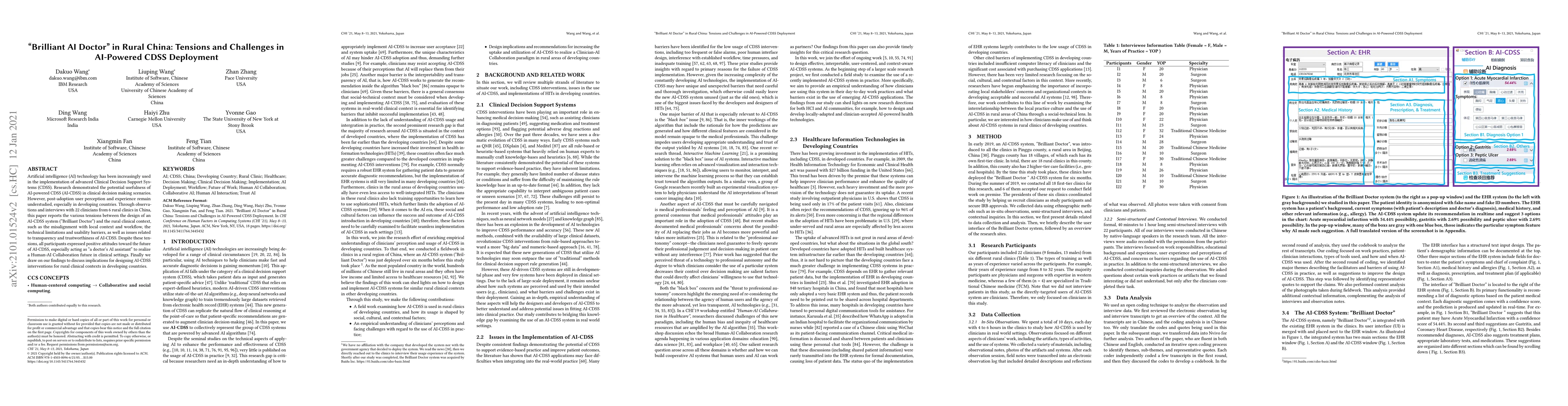 This paper examines the deployment of an AI-powered Clinical Decision Support System ("Brilliant Doctor") in rural Chinese clinics, highlighting tensions between the system's design and the local clinical context, including usability issues and trustworthiness concerns. Despite these challenges, clinicians remain optimistic about the future of AI-CDSS as a collaborative tool.