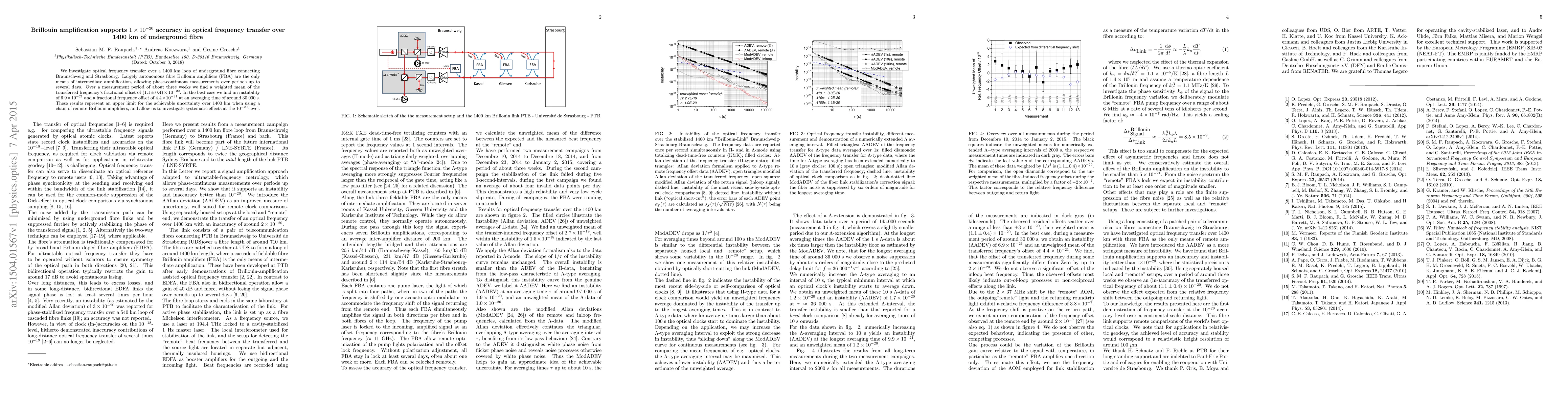 This study demonstrates optical frequency transfer over 1400 km of underground fibre using Brillouin amplifiers, achieving a fractional offset accuracy of $(1.1\pm0.4)\times10^{-20}$ over three weeks, with the best case showing an instability of $6.9\times10^{-21}$ and a fractional frequency offset of $4.4\times10^{-21}$.