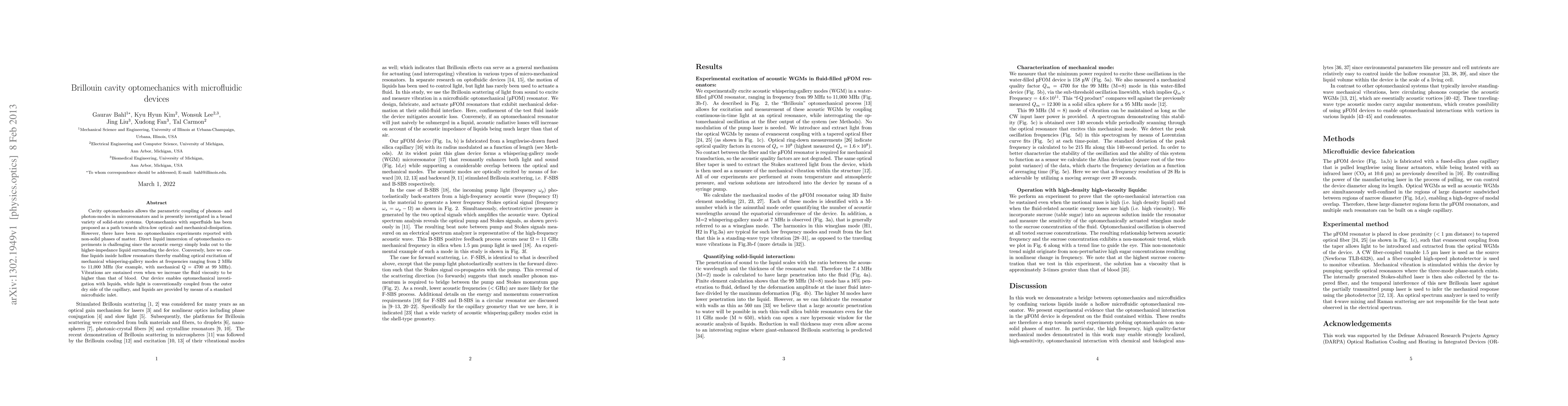 This paper explores the use of microfluidic devices to confine liquids within hollow resonators for cavity optomechanics, enabling optical excitation of mechanical whispering-gallery modes. The study demonstrates sustained vibrations even with high-viscosity fluids, opening new avenues for optomechanical experiments with liquids.