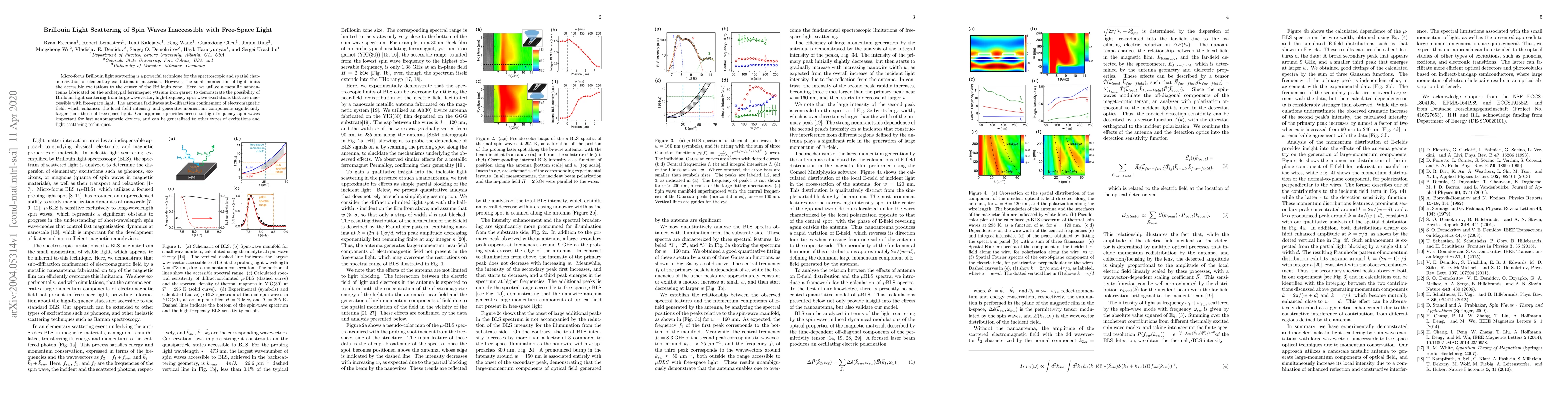 This paper demonstrates the use of a metallic nanoantenna to enable Brillouin light scattering of high-frequency spin waves in yttrium iron garnet that are otherwise inaccessible with free-space light. The nanoantenna enhances local field intensity and provides momentum components larger than free-space light, opening new possibilities for fast nanomagnetic devices.