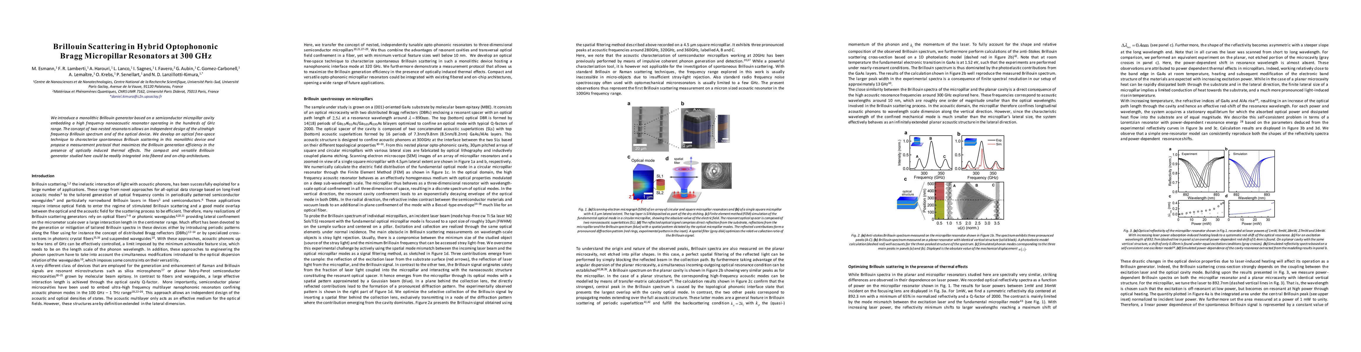 This paper presents a semiconductor micropillar cavity that integrates a high-frequency nanoacoustic resonator to generate Brillouin scattering at 300 GHz. The study develops an optical technique to characterize the scattering and proposes a protocol to enhance efficiency while mitigating thermal effects.