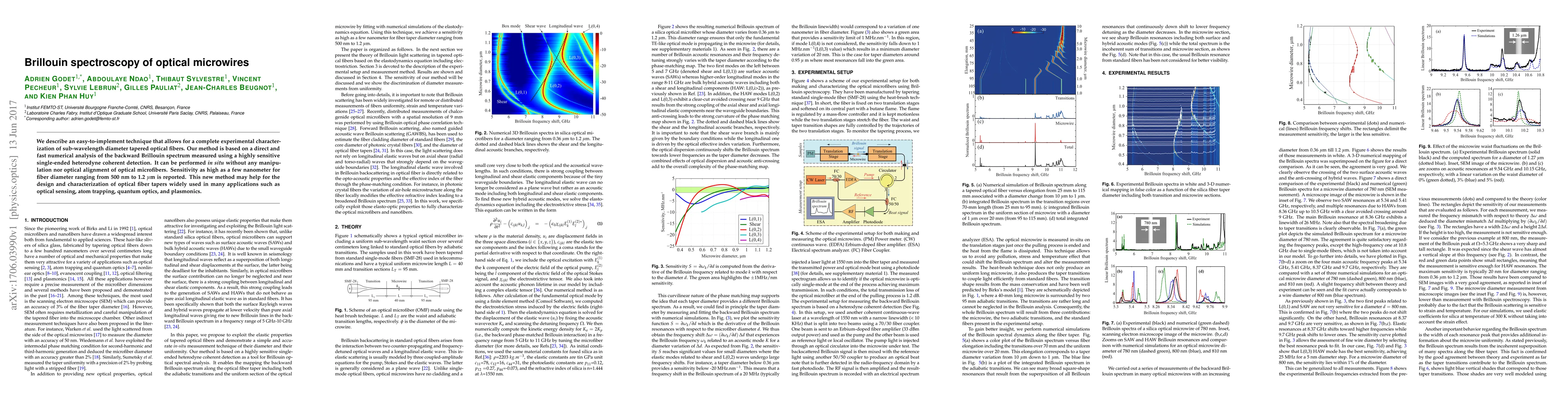 We describe an easy-to-implement technique that allows for a complete experimental characterization of sub-wavelength diameter tapered optical fibers. Our method is based on a direct and fast numerical analysis of the backward Brillouin spectrum measured using a highly sensitive single-ended heterodyne coherent detection. It can be performed in situ without any manipulation nor optical alignment of optical microfibers. Sensitivity as high as a few nanometer for fiber diameter ranging from 500 nm to 1.2 micron is reported. This new method may help for the design and characterization of optical fiber tapers widely used in many applications such as optical sensing, atom trapping, quantum optics, and plasmonics.