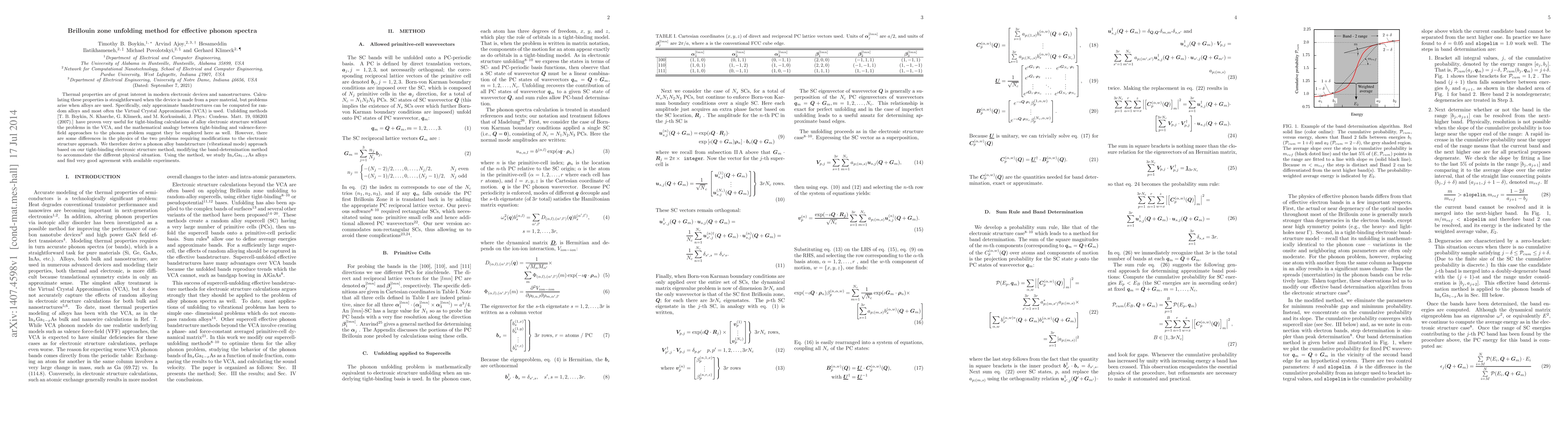 This paper introduces a modified unfolding method for calculating phonon spectra in random alloys, specifically In$_x$Ga$_{1-x}$As, overcoming Virtual Crystal Approximation limitations. The method, derived from tight-binding electronic structure calculations, provides accurate results aligning with experimental data.