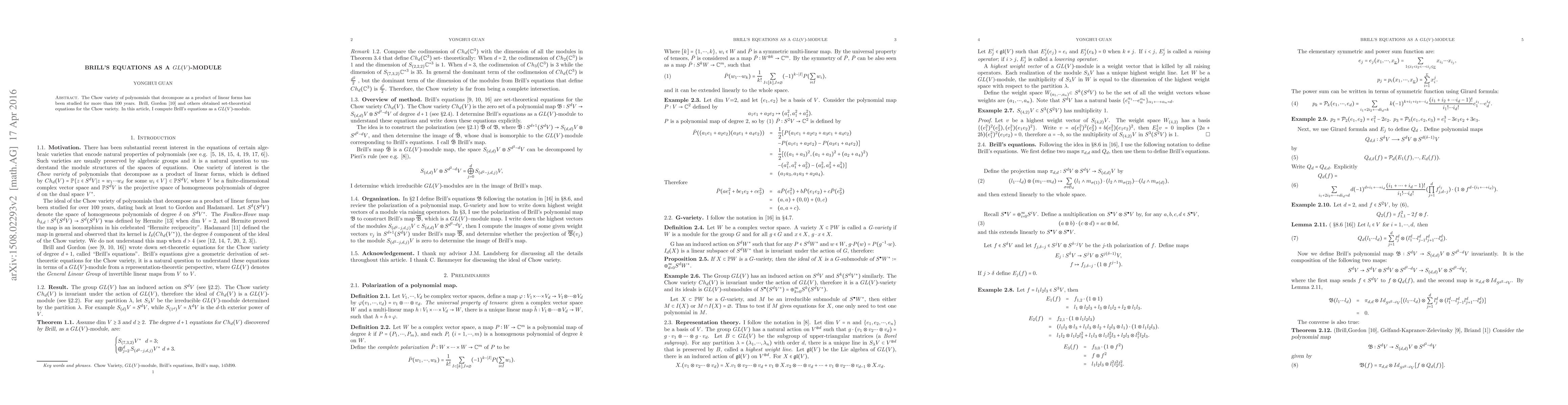 The Chow variety of polynomials that decompose as a product of linear forms has been studied for more than 100 years. Brill, Gordon and others obtained set-theoretical equations for the Chow variety. In this article, I compute Brill's equations as a GL(V)-module.