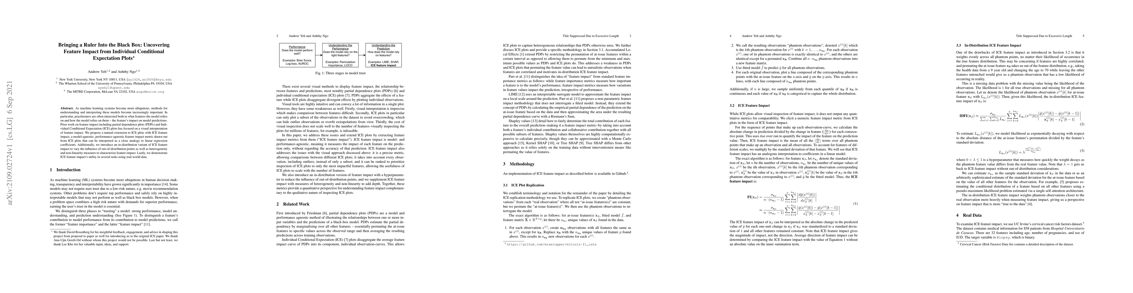 As machine learning systems become more ubiquitous, methods for understanding and interpreting these models become increasingly important. In particular, practitioners are often interested both in what features the model relies on and how the model relies on them--the feature's impact on model predictions. Prior work on feature impact including partial dependence plots (PDPs) and Individual Conditional Expectation (ICE) plots has focused on a visual interpretation of feature impact. We propose a natural extension to ICE plots with ICE feature impact, a model-agnostic, performance-agnostic feature impact metric drawn out from ICE plots that can be interpreted as a close analogy to linear regression coefficients. Additionally, we introduce an in-distribution variant of ICE feature impact to vary the influence of out-of-distribution points as well as heterogeneity and non-linearity measures to characterize feature impact. Lastly, we demonstrate ICE feature impact's utility in several tasks using real-world data.