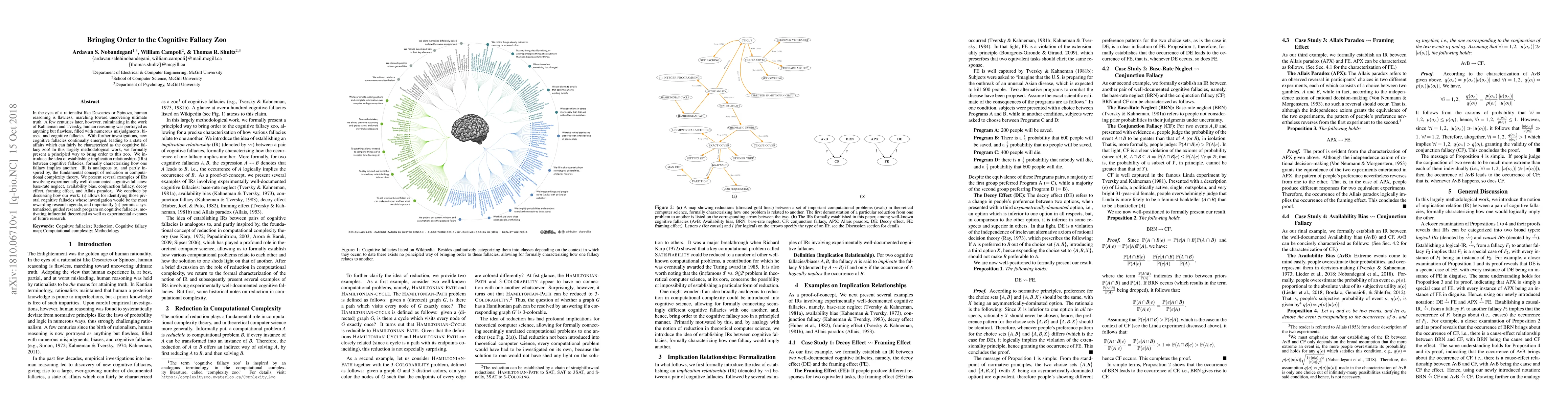In the eyes of a rationalist like Descartes or Spinoza, human reasoning is flawless, marching toward uncovering ultimate truth. A few centuries later, however, culminating in the work of Kahneman and Tversky, human reasoning was portrayed as anything but flawless, filled with numerous misjudgments, biases, and cognitive fallacies. With further investigations, new cognitive fallacies continually emerged, leading to a state of affairs which can fairly be characterized as the cognitive fallacy zoo! In this largely methodological work, we formally present a principled way to bring order to this zoo. We introduce the idea of establishing implication relationships (IRs) between cognitive fallacies, formally characterizing how one fallacy implies another. IR is analogous to, and partly inspired by, the fundamental concept of reduction in computational complexity theory. We present several examples of IRs involving experimentally well-documented cognitive fallacies: base-rate neglect, availability bias, conjunction fallacy, decoy effect, framing effect, and Allais paradox. We conclude by discussing how our work: (i) allows for identifying those pivotal cognitive fallacies whose investigation would be the most rewarding research agenda, and importantly (ii) permits a systematized, guided research program on cognitive fallacies, motivating influential theoretical as well as experimental avenues of future research.