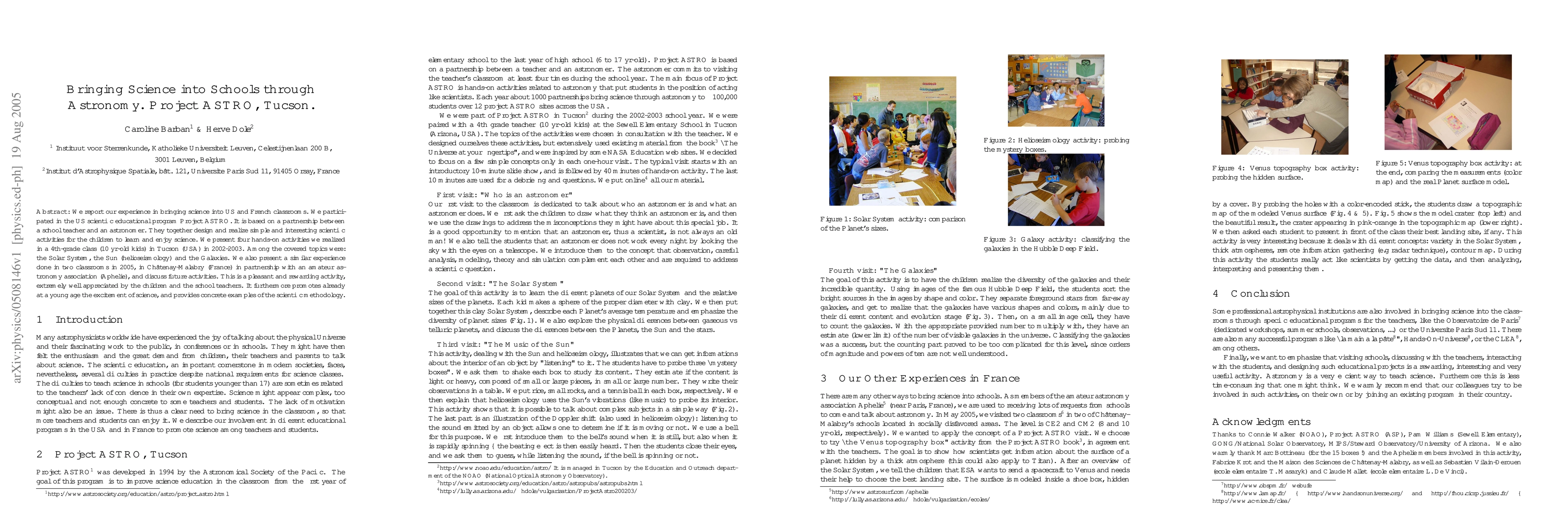 This paper explores the Project ASTRO initiative, which fosters science education through partnerships between school teachers and astronomers, presenting hands-on activities in US and French classrooms. The study highlights successful activities in Tucson, covering topics like the Solar System and helioseismology, and similar experiences in France, demonstrating the positive impact on students' interest in science.