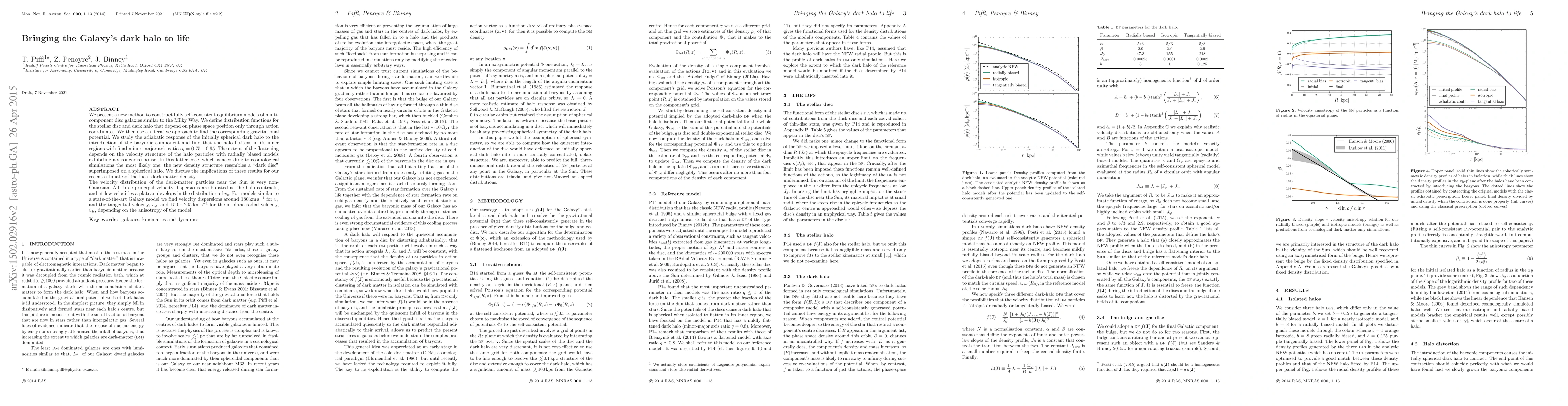 We present a new method to construct fully self-consistent equilibrium models of multi-component disc galaxies similar to the Milky Way. We define distribution functions for the stellar disc and dark halo that depend on phase space position only through action coordinates. We then use an iterative approach to find the corresponding gravitational potential. We study the adiabatic response of the initially spherical dark halo to the introduction of the baryonic component and find that the halo flattens in its inner regions with final minor-major axis ratios $q$ = 0.75 - 0.95. The extent of the flattening depends on the velocity structure of the halo particles with radially biased models exhibiting a stronger response. In this latter case, which is according to cosmological simulations the most likely one, the new density structure resembles a "dark disc" superimposed on a spherical halo. We discuss the implications of these results for our recent estimate of the local dark matter density. The velocity distribution of the dark-matter particles near the Sun is very non-Gaussian. All three principal velocity dispersions are boosted as the halo contracts, and at low velocities a plateau develops in the distribution of $v_z$. For models similar to a state-of-the-art Galaxy model we find velocity dispersions around 155 km s$^{-1}$ for $v_z$ and the tangential velocity, $v_\varphi$, and 140 - 175 km s$^{-1}$ for the in-plane radial velocity, $v_R$, depending on the anisotropy of the model.