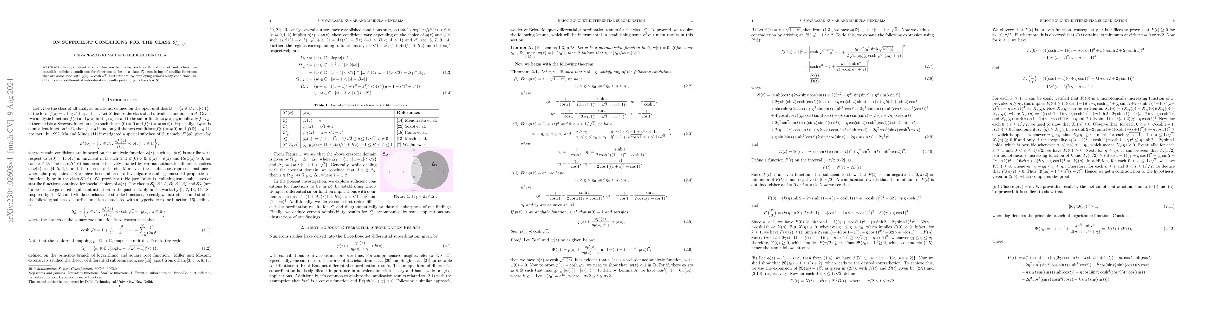 The research employs the Briot-Bouquet differential subordination technique to establish conditions for a class of starlike functions associated with cosh√z.