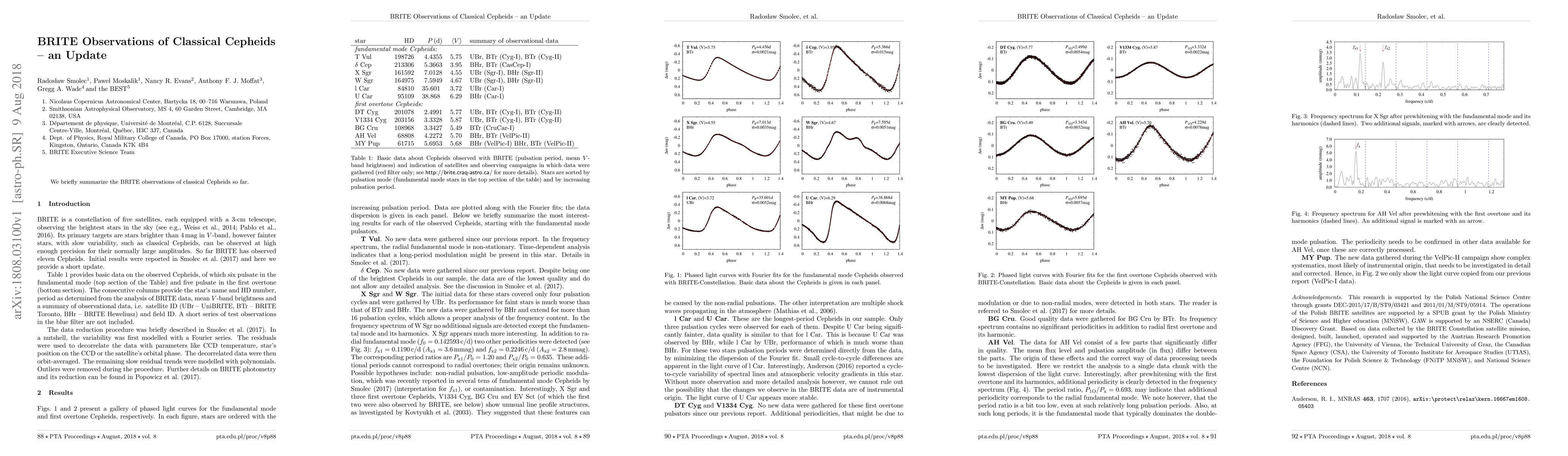 We briefly summarize the BRITE observations of classical Cepheids so far.