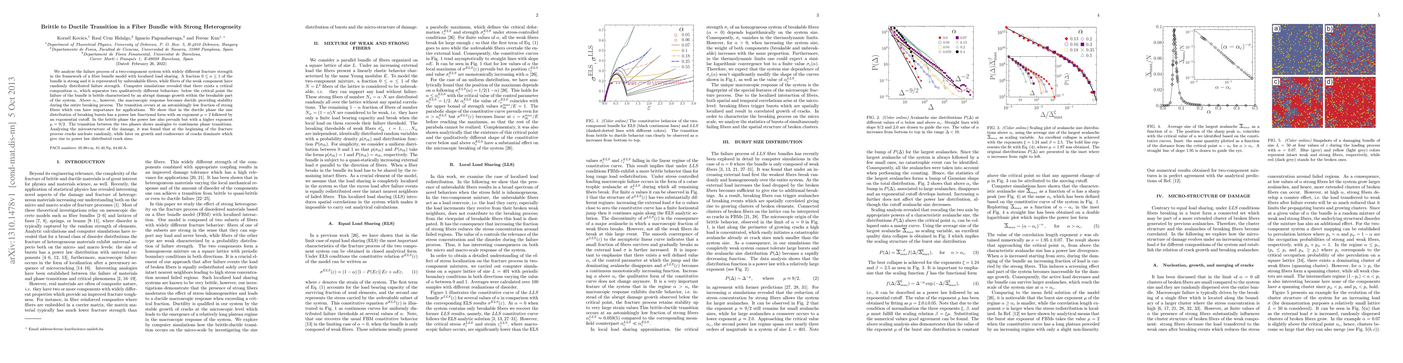 This paper investigates the brittle to ductile transition in a fiber bundle model with strong heterogeneity, where a fraction of strong unbreakable fibers coexists with weak fibers of random failure strength. Simulations reveal a critical fraction of strong fibers, \(\alpha_c\), that marks a transition from brittle to ductile failure behavior, with significant implications for material applications.