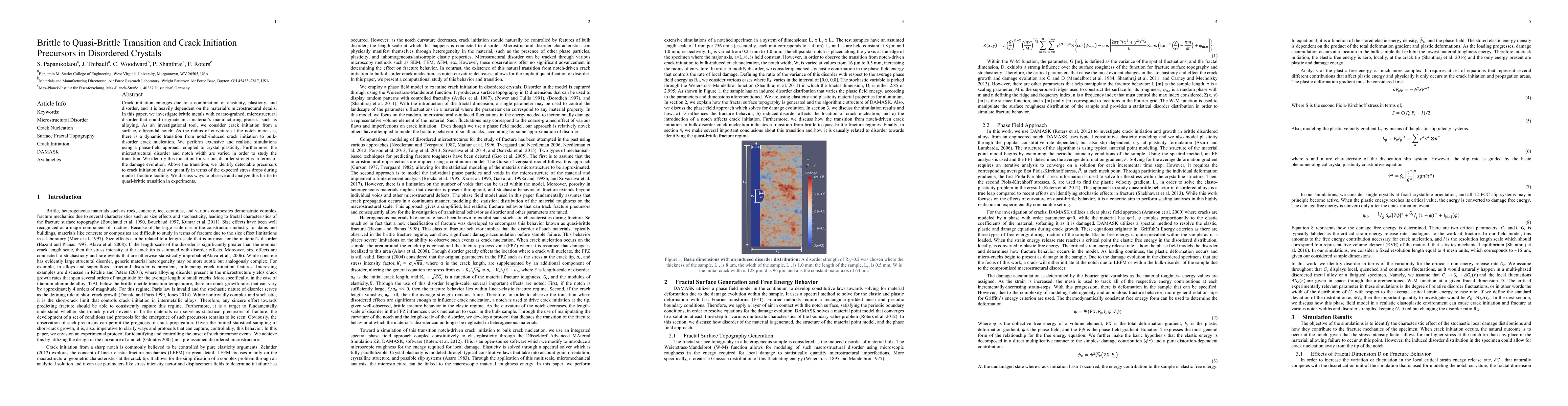 This paper investigates the transition from brittle to quasi-brittle behavior in disordered crystals, focusing on crack initiation in metals with microstructural disorder. The study uses simulations to identify precursors to crack initiation and discusses experimental methods to observe this transition.