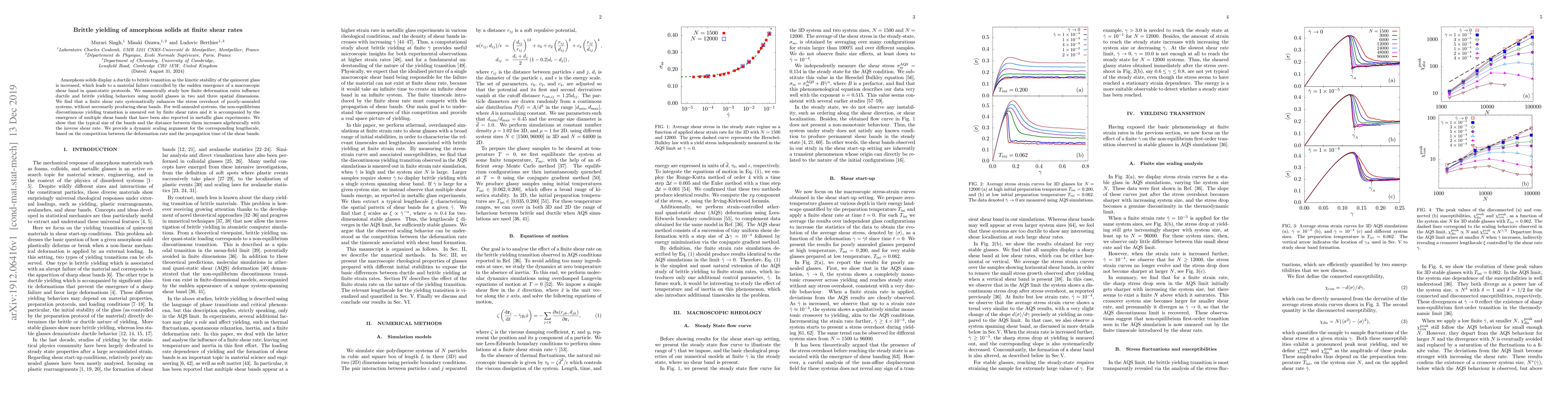 This paper investigates the brittle yielding behavior of amorphous solids under finite shear rates, finding that increasing the deformation rate enhances stress overshoot in poorly-annealed systems and leads to multiple shear bands in well-annealed systems, with band size scaling algebraically with the inverse shear rate. The study reveals a dynamic competition between deformation rate and shear band propagation.