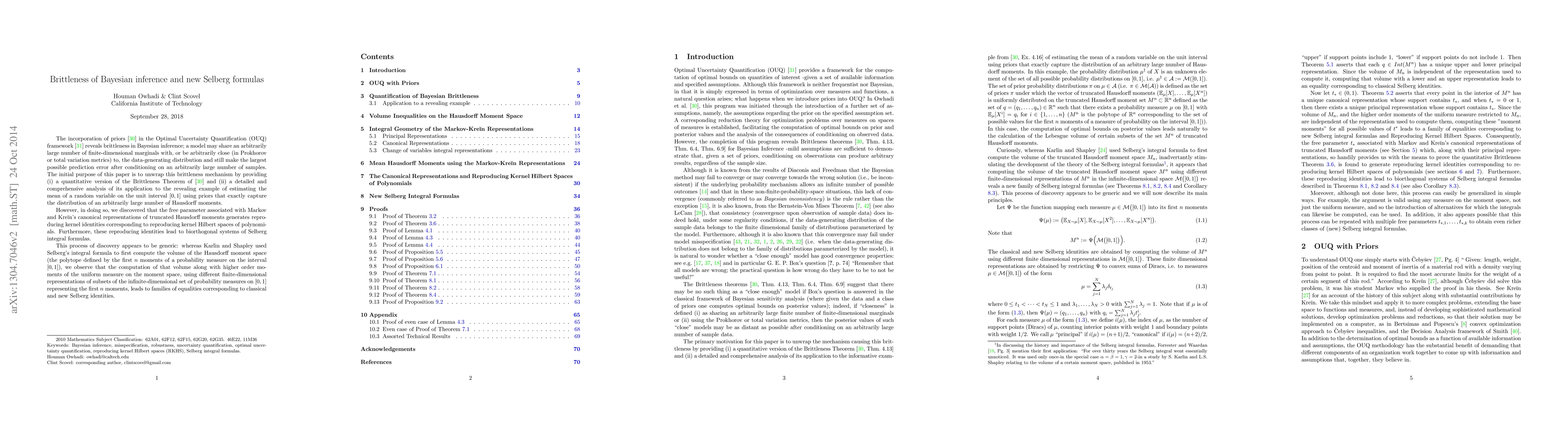 Researchers discovered that Bayesian inference can be brittle due to its ability to approximate arbitrary distributions with finite-dimensional marginals, leading to novel Selberg formulas for truncated Hausdorff moments.