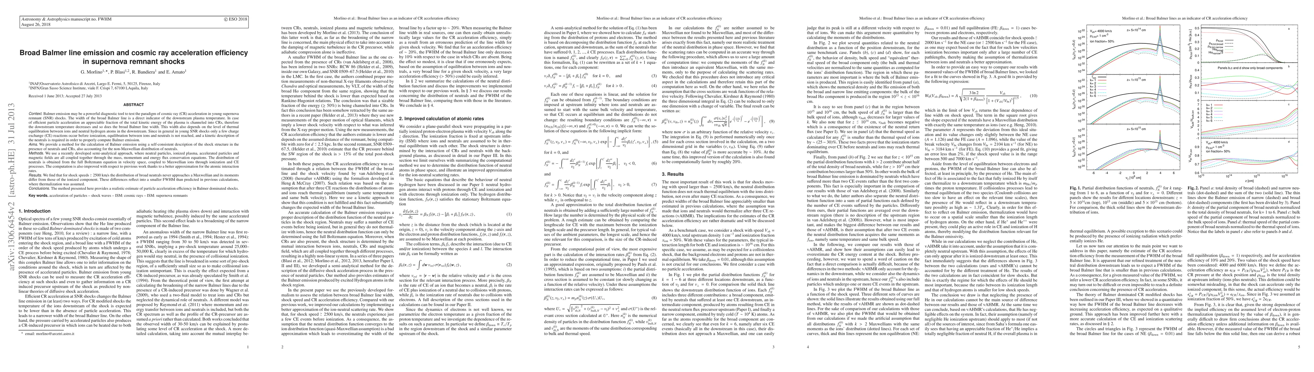 This paper proposes a method to calculate Balmer emission in supernova remnant shocks, using a self-consistent approach that accounts for neutral particles, cosmic rays, and magnetic fields. It finds that for shock speeds above 2500 km/s, the broad neutral distribution differs from the ionized component, leading to a smaller Balmer line width and more accurate estimates of cosmic ray acceleration efficiency.