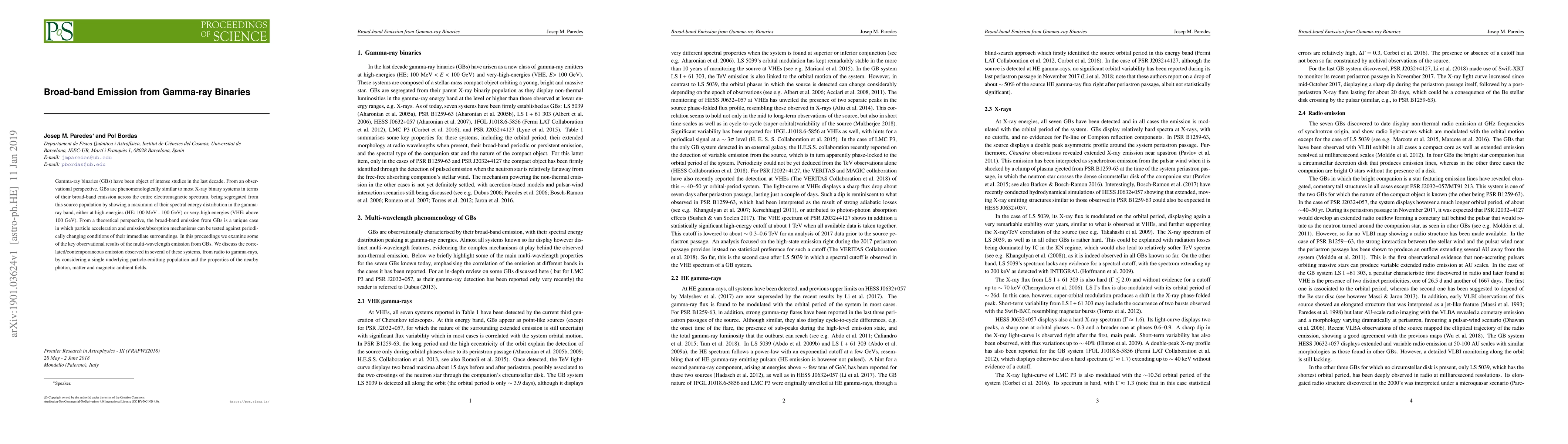 This paper reviews key observational results of gamma-ray binaries (GBs), highlighting their broad-band emission across the electromagnetic spectrum and focusing on the correlated multi-wavelength emissions from radio to gamma-rays. It discusses the unique conditions that allow testing of particle acceleration and emission mechanisms in these systems.