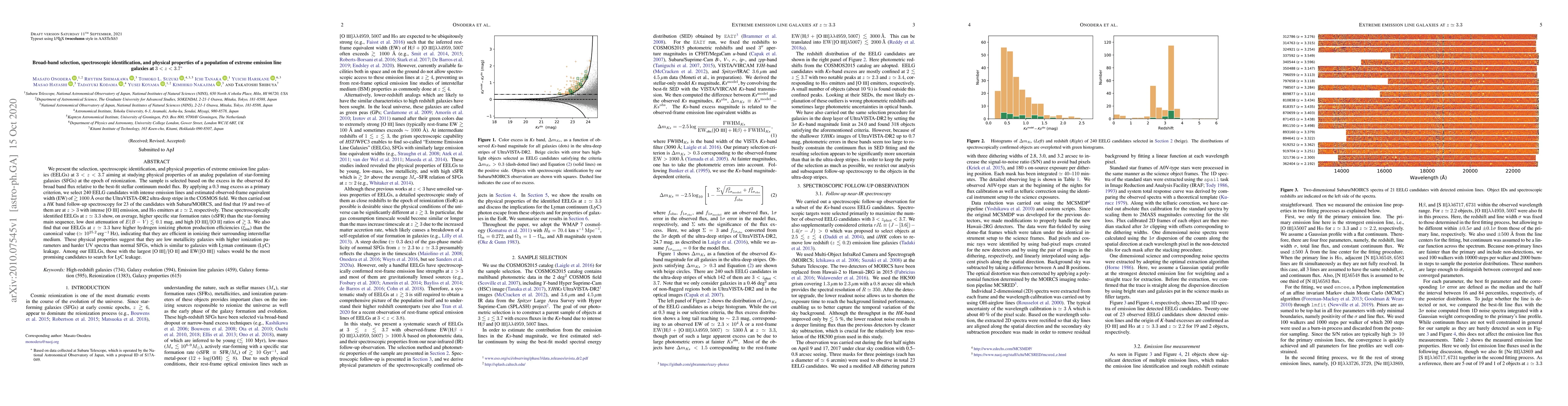 This study identifies and analyzes extreme emission line galaxies (EELGs) at $3<z<3.7$, selected based on their Ks band flux excess, revealing high specific star formation rates, low dust attenuation, and high hydrogen ionizing photon production efficiencies. These properties suggest they are low metallicity galaxies with efficient ionization, potentially leaking Lyman continuum photons.