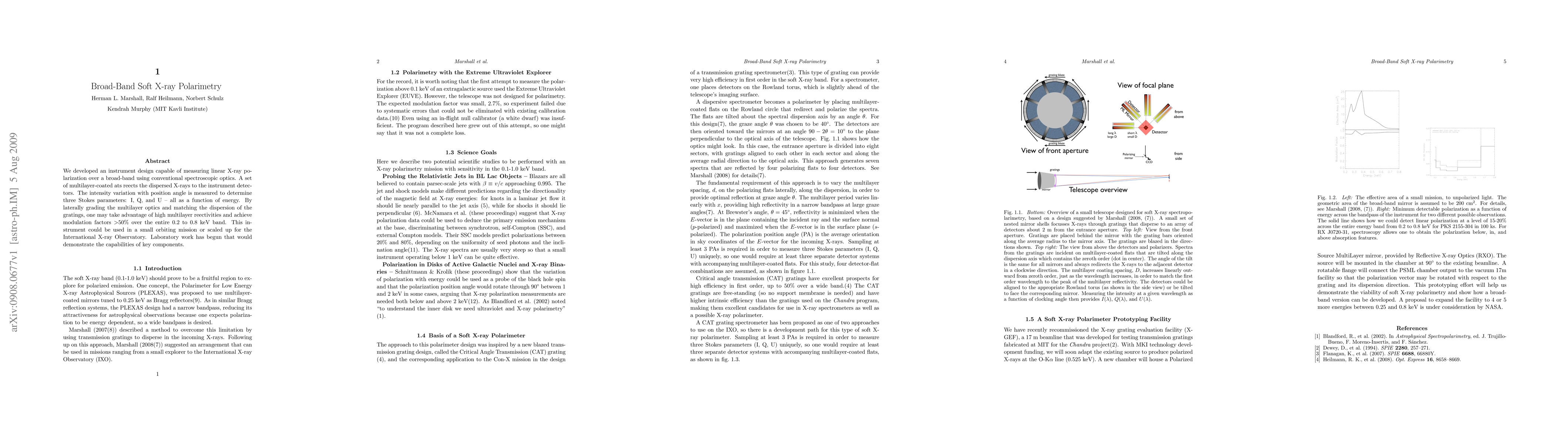 We developed an instrument design capable of measuring linear X-ray polarization over a broad-band using conventional spectroscopic optics. A set of multilayer-coated flats reflects the dispersed X-rays to the instrument detectors. The intensity variation with position angle is measured to determine three Stokes parameters: I, Q, and U -- all as a function of energy. By laterally grading the multilayer optics and matching the dispersion of the gratings, one may take advantage of high multilayer reflectivities and achieve modulation factors > 50% over the entire 0.2 to 0.8 keV band. This instrument could be used in a small orbiting mission or scaled up for the International X-ray Observatory. Laboratory work has begun that would demonstrate the capabilities of key components.