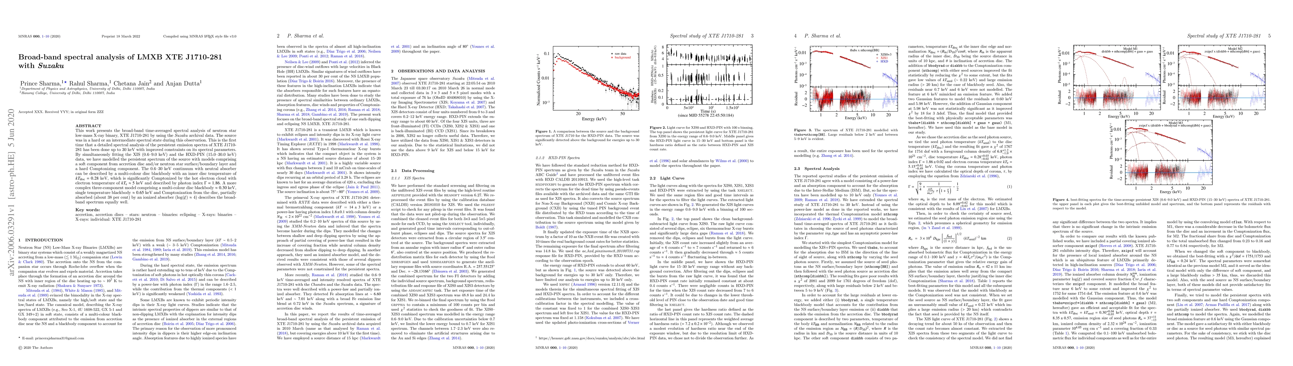 This paper provides a detailed spectral analysis of the neutron star low-mass X-ray binary XTE J1710-281 using Suzaku data, revealing a hard or intermediate spectral state. The broad-band spectrum from 0.6 to 30 keV is best modeled by a combination of a soft accretion disc component and a hard Comptonizing component.