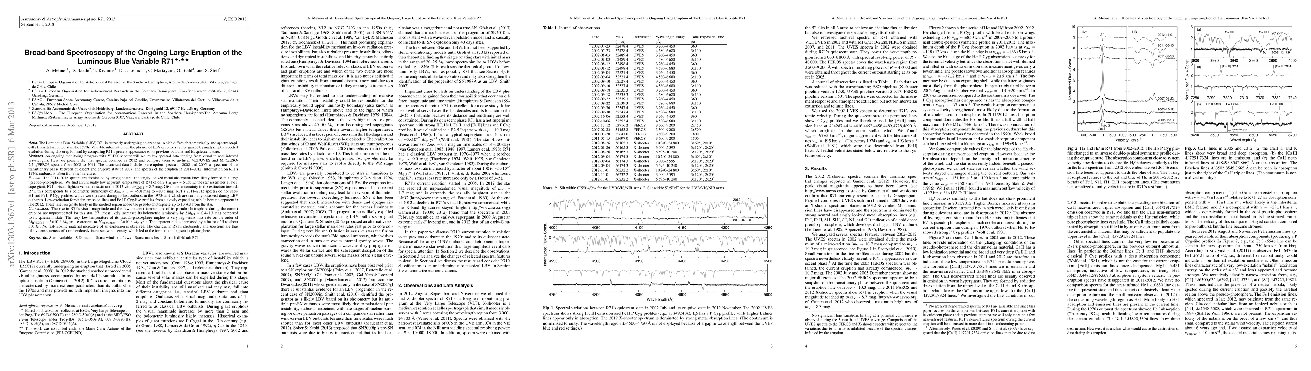 The Luminous Blue Variable (LBV) R71 is currently undergoing an eruption, which differs photometrically and spectroscopically from its last outburst in the 1970s. Valuable information on the physics of LBV eruptions can be gained by analyzing the spectral evolution during this eruption and by comparing R71's present appearance to its previous outburst and its quiescent state. Here we present the first spectra of an ongoing monitoring program with VLT/X-shooter and compare them to archival VLT/UVES and MPG/ESO-2.2m/FEROS spectra from 2002-2011. The discussed data include pre-eruption spectra in 2002 and 2005, a spectrum of the transitionary phase between quiescent and eruptive state in 2007, and spectra of the eruption in 2011-2012. The 2011-2012 spectra are dominated by strong neutral and singly ionized metal absorption lines likely formed in a large "pseudo-photosphere." We find an unusually low apparent temperature of R71 of only ~6650 K; the star resembles a late F supergiant. R71's visual lightcurve had a maximum in 2012 with mV ~ 8.7 mag. Given the uncertainty in the extinction towards R71, this corresponds to a bolometric luminosity of -9.8 mag to -10.3 mag. R71's 2011-2012 spectra do not show H I and Fe II P Cyg profiles, which were present during its last outburst in the 1970s and which are normally observed during LBV outbursts. The rise in R71's visual magnitude and the low apparent temperature of its pseudo-photosphere during the current eruption are unprecedented for this star. R71 most likely increased its bolometric luminosity by 0.4-1.3 mag compared to its quiescent state. The very low temperature of its pseudo-photosphere implies a very high-mass loss rate, a factor of 1000 higher than during the quiescence state. No fast-moving material indicative of an explosion is observed (abridged).