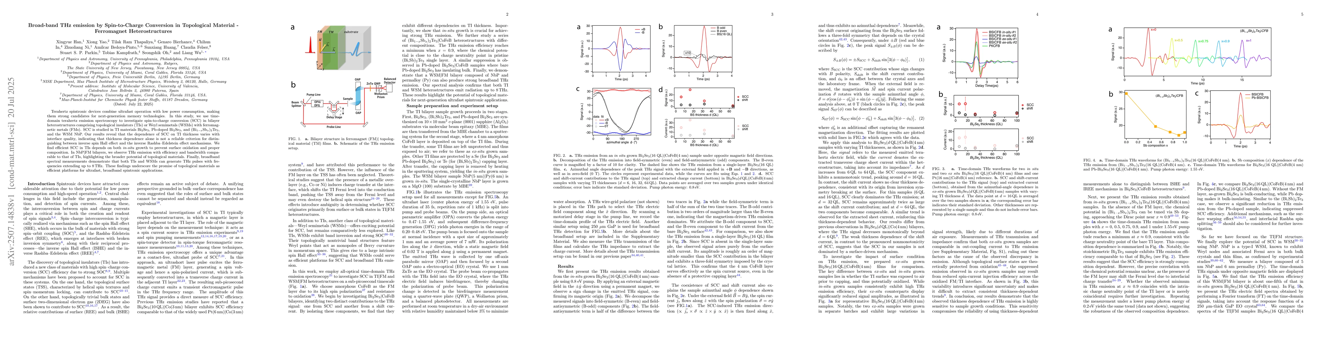 Terahertz spintronic devices combine ultrafast operation with low power consumption, making them strong candidates for next-generation memory technologies. In this study, we use time-domain terahertz emission spectroscopy to investigate spin-to-charge conversion (SCC) in bilayer heterostructures comprising topological insulators (TIs) or Weyl semimetals (WSMs) with ferromagnetic metals (FMs). SCC is studied in TI materials \ce{Bi2Se3}, Pb-doped \ce{Bi2Se3}, and (Bi$_{1-x}$Sb$_x$)$_2$Te$_3$, and the WSM NbP. Our results reveal that the dependence of SCC on TI thickness varies with interface quality, indicating that thickness dependence alone is not a reliable criterion for distinguishing between inverse spin Hall effect and the inverse Rashba--Edelstein effect mechanisms. We find efficient SCC in TIs depends on both \textit{in-situ} growth to prevent surface oxidation and proper composition. In NbP$\vert$FM bilayers, we observe THz emission with efficiency and bandwidth comparable to that of TIs, highlighting the broader potential of topological materials. Finally, broadband spectral measurements demonstrate that both TIs and WSMs can generate THz pulses with frequencies extending up to 8\,THz. These findings underscore the promise of topological materials as efficient platforms for ultrafast, broadband spintronic applications.