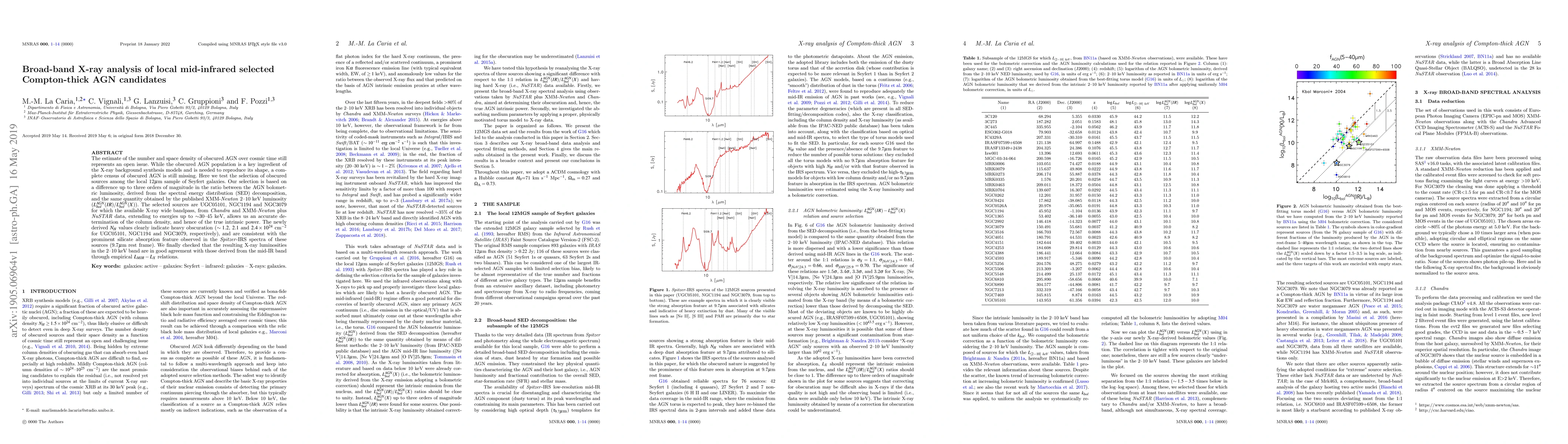 The estimate of the number and space density of obscured AGN over cosmic time still represents an open issue. While the obscured AGN population is a key ingredient of the X-ray background synthesis models and is needed to reproduce its shape, a complete census of obscured AGN is still missing. Here we test the selection of obscured sources among the local 12-micron sample of Seyfert galaxies. Our selection is based on a difference up to three orders of magnitude in the ratio between the AGN bolometric luminosity, derived from the spectral energy distribution (SED) decomposition, and the same quantity obtained by the published XMM-Newton 2-10 keV luminosity. The selected sources are UGC05101, NGC1194 and NGC3079 for which the available X-ray wide bandpass, from Chandra and XMM-Newton plus NuSTAR data, extending to energies up to ~30-45 keV, allows us an accurate determination of the column density, and hence of the true intrinsic power. The newly derived NH values clearly indicate heavy obscuration (about 1.2, 2.1 and 2.4 x10^{24} cm-2 for UGC05101, NGC1194 and NGC3079, respectively) and are consistent with the prominent silicate absorption feature observed in the Spitzer-IRS spectra of these sources (at 9.7 micron rest frame). We finally checked that the resulting X-ray luminosities in the 2-10 keV band are in good agreement with those derived from the mid-IR band through empirical L_MIR-L_X relations.